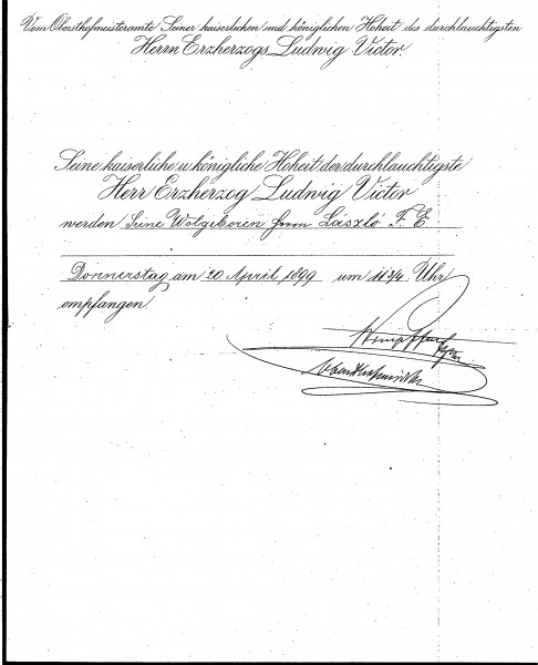 Invitation from Archduke Ludwig Viktor of Austria, youngest brother of the Emperor Franz Joseph, to de László