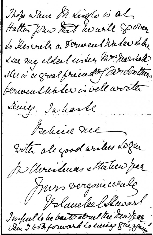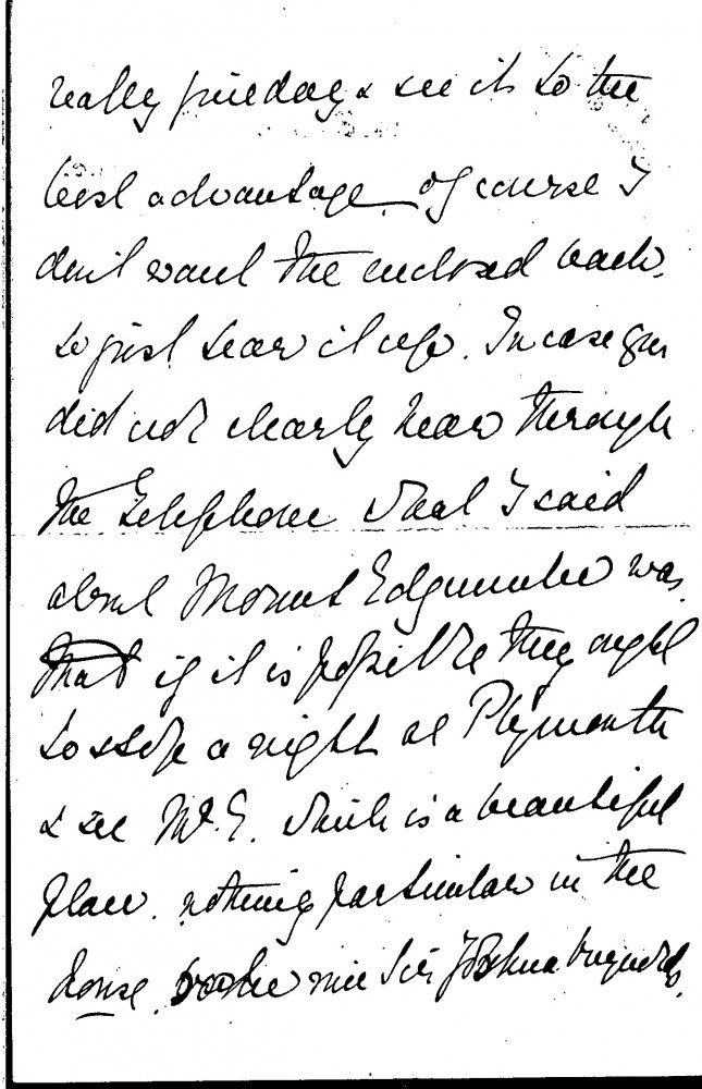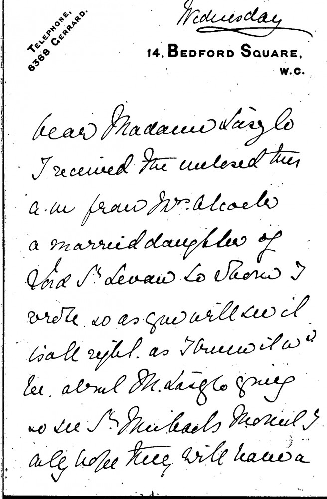 Undated letter from Blanche Stewart to Lucy regarding de László's travel plans in December 1907. Stewart has obtained approval from Lord St Levan's daughter for de László to see St Michael's Mount in Cornwall. She also suggests that de László and the painter Alfred East (East and de László travelled together to St Ives in December 1907), should stop by Mount Edgcumbe. Finally, she mentions that when de László is at Hutton John, he should call on her sister, who is a friend of the Lowthers