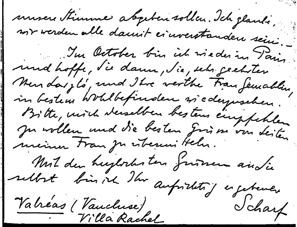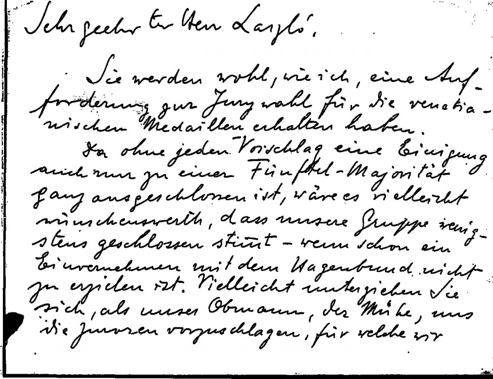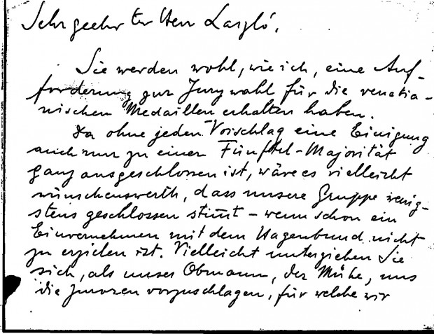 Undated letter from the Austrian painter, Viktor Scharf, to de László asking whether he received an invitation for the election of the jury for the medals in Venice. As de László is the Chairman of their group, Scharf asks him to choose the jurors that they should vote for