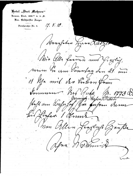 Letter from Nelly von Schmidt to de László regarding his and Lucy's visit—a car will be waiting for them at the station. Everyone is looking forward to their arrival
