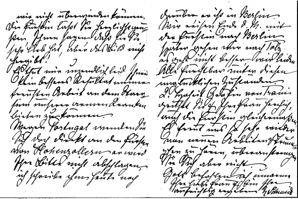 Letter from Nelly von Schmidt outlining that the Fürstin refuses to lend de László the painting. Regarding Portugal, he should turn directly to the Fürst who will not refuse the request