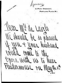 The Archive Filter search More options DLA number submit Date All 1892 1893 1894 1895 1896 1897 1898 1899 1900 1901 1902 1903 1904 1905 1906 1907 1908 1909 1910 1911 1912 1913 1914 1915 1916 1917 1918 1919 1920 1921 1922 1923 1924 1925 1926 1927 1928 1929 1930 1931 1932 1933 1934 1935 1936 1937 1956 1986 2016 Sender / Creator All “Árpád” Cooperative Society (2) Abels, Ludwig (1867 - 1937) (1) Aberconway, Charles Benjamin Bright McLaren, 1st Baron (1850 - 1934) (5) Acton of Aldenham, Richard Maximilian Lyon-Dalberg-Acton, 2nd Baron (1870 - 1924) (1) Aczél, Madame Edward [née Anny, surname unknown] (1) Agen, Boyer d' (1857 - 1945) (3) Agnew, William Lockett (1858 - 1918) (2) Ahlefeldt-Laurvig, Count Preben Ferdinand (1872 - 1946) (1) Aiken, William (1880-1950) (2) Ainger, Arthur Campbell (1841-1919) (1) Ainsworth, J.S. (1) Airlie, Mabell Ogilvy, Countess of [née Lady Mabell Frances Elizabeth Gore]; wife of 11th Earl (1866 - 1956) (1) Albemarle, Arnold Allan Cecil Keppel, 8th Earl of (1858 - 1942) (4) Albemarle, Gertrude Keppel, Countess of [née Lady Gertrude Lucia Egerton]; wife of 8th Earl (1861 - 1943) (1) Alexander, Mrs John White [née Elizabeth Alexander] (1) Alfred, G. (4) Allez, Mrs Jacques [née Mary Astor Paul; other married name Mrs Charles A. Munn] (1889 - 1950) (4) Almásy, László (1869 - 1936) (1) Amshewitz, John Henry (1882 - 1942) (6) Andrassy de Csíkszentkirály et Krasznahorka the Younger, Count Gyula (1860 - 1929) (1) Annesley, Priscilla Annesley, Countess of [née Priscilla Cecilia Armitage Moore]; wife of 5th Earl (1892 - 1941) (1) Anson, Sir William Reynell, 3rd Baronet (1843 - 1914) (1) Anthony, Geo. Hy. (1) Apponyi de Nagyappony, Count Albert (1846 - 1933) (1) Apsley, Allen Algernon Bathurst, Lord (1895 - 1942) (1) Aramon, Rita d' (1) Armstrong, Ronald (1) Armstrong, Sir Walter (1850 - 1918) (1) Arti et Amicitiae (1) Asquith, Lady Cynthia Mary Evelyn [nee Charteris] (1887-1960) (1) Astley, Mrs Philip [née Madeleine Carroll; other married names Mrs Sterling Hayden, Mrs Henri Lavorel and Mrs Andrew Heiskell] (1906 - 1987) (1) Astor of Hever, Lady [née Lady Violet Mary Elliot-Murray-Kynynmound; other married name Lady Charles Petty-Fitzmaurice] (1889 - 1965) (1) Athlone, Princess Alice of [née Princess Alice of Albany]; wife of 1st Earl (1883 - 1981) (6) Austria, Archduchess Friedrich of [née Princess Isabella von Croÿ-Dülmen] (1856 - 1931) (3) Austria, Archduke Ludwig Viktor of (1842 - 1919) (1) Aybar, Miguel González de Castejón y Elío, I conde de (1862 - 1939) (1) B. Holden & Co. (1) Bacsich, Máté (2) Baden-Powell, Lord Robert Stephenson Smyth Baden-Powell, 1st Baron (1857 - 1941) (2) Baden, Margravine of [née Princess Theodora of Greece and Denmark]; wife of Prince Berthold (1906 - 1969) (1) Baeyens, Baronne Marcel [née Suzanne Desmons] (1884 - 1949) (6) Bailey, J. R. (16) Bajza, Aladar (1) Baker, Constable Albert (1) Baldry, Alfred Lys (1858 - 1939) (48) Baldwin of Bewdley, Stanley Baldwin, 1st Earl (1867 - 1947) (1) Balfour of Dawyk, Lieutenant-Colonel Frederick Robert Stephen (1873 - 1945) (1) Balfour, Arthur James Balfour, 1st Earl of (1848 - 1930) (2) Bálint, Zoltán (1871 - 1939) (1) Balló, Ede (1859 - 1936) (10) Balló, Mrs Ede [née Margit Vámossy] (2) Balog, Elemér (1881 - 1955) (1) Balogh, Loránd Almási (1) Bankes, Mrs Walter Ralph [née Henrietta Jenny Fraser] (1871 - 1953) (1) Barbour, Doctor Alexander Hugh Freeland (1856 - 1927) (1) Barclays Bank Ltd. (1) Bárczy de Bárcziháza, István (1882 - 1952) (10) Bárczy de Bárcziháza, Madame István [née Edit Luczenbacher de Szob] (1888 - 1973) (2) Bárdossy, László (1890 - 1946) (2) Baring, Lady Ulrica [née Lady Ulrica Dunscombe] (1875-1935); wife of Brigadier-General the Hon. Everard Baring (1875 - 1935) (1) Barnaby, J. (3) Barratt, John Arthur (1857-1944) (1) Bath, Thomas Henry Thynne, 5th Marquess of (1862 - 1946) (1) Bathurst, C. J. (1) Bathurst, Countess [née Lilias Margaret Frances Borthwick] (1871 - 1965) (2) Battersea, Constance Flower, Baroness [née Constance de Rothschild]; wife of 1st Baron (1843 - 1931) (3) Baumann, Gyula (1) Bayer, Ágost (1892 - 1958) (1) Beal, Boylston Adams (1865-1944) (1) Beatty, John W. (1851 - 1924) (3) Beatty, Lady [née Mino Edith Dunn; other married name Mrs Carol D. Stone] (1886 - 1952) (2) Beauclerk, Lady Alexandra 'Alix' de Vere (1878 - 1935) (1) Beddington, Mrs Claude [née Frances Ethel Homan-Mulock] (1880 - 1963) (1) Beer, Esmond Samuel de (1895 - 1990) (1) Bell, George Kennedy Allen, Bishop of Chichester (1883 - 1958) (1) Belloc Lowndes, Mrs Marie Adelaide (1868-1947) (2) Bélugou, Léon (1865 - 1934) (8) Benczúr, Mrs Gyula (1) Bendir, Arthur ( - 1957) (8) Benedek, Atilla (1) Bénédite, Léonce (1859 - 1925) (2) Bénédite, Rosa (2) Benkő, Kálmán (1) Benlliure Gil, Professor Mariano (1862 - 1947) (7) Bennett Dampier, Lieutenant Colonel William Henry (c. 1869 - 1930) (1) Benson, Mrs Robert Henry [née Evelyn Holford] (1856 - 1943) (1) Benthall, F. Bernard (1) Berényi, Gyula (1) Berkeley Wills, Gerald (1882 - 1979) (23) Berks, Hugo Reichsritter von (1841 - 1906) (1) Berzeviczy de Berzevicze et Kakaslomnicz, Albert (1853 - 1936) (1) Bevan, G. L. (1) Bihari, Mrs Sándor (1) Bilkei Gorzó, Nándor (1) Birley, Sir Oswald (1880-1952) (4) Biron von Curland, Gustav Peter Johannes, Prince (1859 - 1941) (1) Blair, G. (1) Blaschczik, Johann (1866-1936) (1) Bligh, Ada Theodosia (3) Blomfield, Sir Reginald Theodore (1856-1942) (1) Bókay, Professor János (1858 - 1937) (3) Bone, Sir Muirhead (1876-1953) (1) Boross, Jenő (1868 - 1942) (4) Boross, Samu (1) Bosdari, Count Alessandro De (1867-1929) (1) Bossányi, Ervin (1891 - 1975) (1) Bottomley, Horatio William (1860 - 1933) (3) Bourbon, Diana (1) Bourne, His Eminence Cardinal Francis Alphonsus (1861 - 1935) (1) Bowen & Mallon (1) Bowlby, Arthur Salvin (1872-1932) (1) Bowlby, Mrs Arthur Salvin [née Catherine Mary Bond] (1875 - 1943) (3) Bowlby, Mrs Edward Salvin [née Elizabeth Van