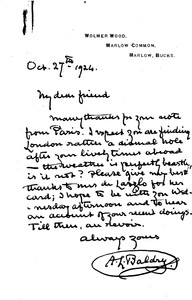 The Archive Filter search More options DLA number submit Date All 1892 1893 1894 1895 1896 1897 1898 1899 1900 1901 1902 1903 1904 1905 1906 1907 1908 1909 1910 1911 1912 1913 1914 1915 1916 1917 1918 1919 1920 1921 1922 1923 1924 1925 1926 1927 1928 1929 1930 1931 1932 1933 1934 1935 1936 1937 1956 1986 2016 Sender / Creator All “Árpád” Cooperative Society (2) Abels, Ludwig (1867 - 1937) (1) Aberconway, Charles Benjamin Bright McLaren, 1st Baron (1850 - 1934) (5) Acton of Aldenham, Richard Maximilian Lyon-Dalberg-Acton, 2nd Baron (1870 - 1924) (1) Aczél, Madame Edward [née Anny, surname unknown] (1) Agen, Boyer d' (1857 - 1945) (3) Agnew, William Lockett (1858 - 1918) (2) Ahlefeldt-Laurvig, Count Preben Ferdinand (1872 - 1946) (1) Aiken, William (1880-1950) (2) Ainger, Arthur Campbell (1841-1919) (1) Ainsworth, J.S. (1) Airlie, Mabell Ogilvy, Countess of [née Lady Mabell Frances Elizabeth Gore]; wife of 11th Earl (1866 - 1956) (1) Albemarle, Arnold Allan Cecil Keppel, 8th Earl of (1858 - 1942) (4) Albemarle, Gertrude Keppel, Countess of [née Lady Gertrude Lucia Egerton]; wife of 8th Earl (1861 - 1943) (1) Alexander, Mrs John White [née Elizabeth Alexander] (1) Alfred, G. (4) Allez, Mrs Jacques [née Mary Astor Paul; other married name Mrs Charles A. Munn] (1889 - 1950) (4) Almásy, László (1869 - 1936) (1) Amshewitz, John Henry (1882 - 1942) (6) Andrassy de Csíkszentkirály et Krasznahorka the Younger, Count Gyula (1860 - 1929) (1) Annesley, Priscilla Annesley, Countess of [née Priscilla Cecilia Armitage Moore]; wife of 5th Earl (1892 - 1941) (1) Anson, Sir William Reynell, 3rd Baronet (1843 - 1914) (1) Anthony, Geo. Hy. (1) Apponyi de Nagyappony, Count Albert (1846 - 1933) (1) Apsley, Allen Algernon Bathurst, Lord (1895 - 1942) (1) Aramon, Rita d' (1) Armstrong, Ronald (1) Armstrong, Sir Walter (1850 - 1918) (1) Arti et Amicitiae (1) Asquith, Lady Cynthia Mary Evelyn [nee Charteris] (1887-1960) (1) Astley, Mrs Philip [née Madeleine Carroll; other married names Mrs Sterling Hayden, Mrs Henri Lavorel and Mrs Andrew Heiskell] (1906 - 1987) (1) Astor of Hever, Lady [née Lady Violet Mary Elliot-Murray-Kynynmound; other married name Lady Charles Petty-Fitzmaurice] (1889 - 1965) (1) Athlone, Princess Alice of [née Princess Alice of Albany]; wife of 1st Earl (1883 - 1981) (6) Austria, Archduchess Friedrich of [née Princess Isabella von Croÿ-Dülmen] (1856 - 1931) (3) Austria, Archduke Ludwig Viktor of (1842 - 1919) (1) Aybar, Miguel González de Castejón y Elío, I conde de (1862 - 1939) (1) B. Holden & Co. (1) Bacsich, Máté (2) Baden-Powell, Lord Robert Stephenson Smyth Baden-Powell, 1st Baron (1857 - 1941) (2) Baden, Margravine of [née Princess Theodora of Greece and Denmark]; wife of Prince Berthold (1906 - 1969) (1) Baeyens, Baronne Marcel [née Suzanne Desmons] (1884 - 1949) (6) Bailey, J. R. (16) Bajza, Aladár (1) Baker, Constable Albert (1) Baldry, Alfred Lys (1858 - 1939) (57) Baldwin of Bewdley, Stanley Baldwin, 1st Earl (1867 - 1947) (1) Balfour of Dawyk, Lieutenant-Colonel Frederick Robert Stephen (1873 - 1945) (1) Balfour, Arthur James Balfour, 1st Earl of (1848 - 1930) (2) Bálint, Zoltán (1871 - 1939) (1) Balló, Ede (1859 - 1936) (10) Balló, Mrs Ede [née Margit Vámossy] (2) Balog, Elemér (1881 - 1955) (1) Balogh, Loránd Almási (1) Bankes, Mrs Walter Ralph [née Henrietta Jenny Fraser] (1871 - 1953) (1) Barbour, Doctor Alexander Hugh Freeland (1856 - 1927) (1) Barclays Bank Ltd. (1) Bárczy de Bárcziháza, István (1882 - 1952) (10) Bárczy de Bárcziháza, Madame István [née Edit Luczenbacher de Szob] (1888 - 1973) (2) Bárdossy, László (1890 - 1946) (2) Baring, Lady Ulrica [née Lady Ulrica Dunscombe] (1875-1935); wife of Brigadier-General the Hon. Everard Baring (1875 - 1935) (1) Barnaby, J. (3) Barratt, John Arthur (1857-1944) (1) Bath, Thomas Henry Thynne, 5th Marquess of (1862 - 1946) (1) Bathurst, C. J. (1) Bathurst, Countess [née Lilias Margaret Frances Borthwick] (1871 - 1965) (2) Battersea, Constance Flower, Baroness [née Constance de Rothschild]; wife of 1st Baron (1843 - 1931) (3) Baumann, Gyula (1) Bayer, Ágost (1892 - 1958) (1) Beal, Boylston Adams (1865-1944) (1) Beatty, John W. (1851 - 1924) (3) Beatty, Lady [née Mino Edith Dunn; other married name Mrs Carol D. Stone] (1886 - 1952) (2) Beauclerk, Lady Alexandra 'Alix' de Vere (1878 - 1935) (1) Beddington, Mrs Claude [née Frances Ethel Homan-Mulock] (1880 - 1963) (1) Beer, Esmond Samuel de (1895 - 1990) (1) Bell, George Kennedy Allen, Bishop of Chichester (1883 - 1958) (1) Belloc Lowndes, Mrs Marie Adelaide (1868-1947) (2) Bélugou, Léon (1865 - 1934) (8) Benczúr, Mrs Gyula (1) Bendir, Arthur ( - 1957) (8) Benedek, Atilla (1) Bénédite, Léonce (1859 - 1925) (2) Bénédite, Rosa (2) Benkő, Kálmán (1) Benlliure Gil, Professor Mariano (1862 - 1947) (7) Bennett Dampier, Lieutenant Colonel William Henry (c. 1869 - 1930) (1) Benson, Mrs Robert Henry [née Evelyn Holford] (1856 - 1943) (1) Benthall, F. Bernard (1) Berényi, Gyula (1) Berkeley Wills, Gerald (1882 - 1979) (23) Berks, Hugo Reichsritter von (1841 - 1906) (1) Berzeviczy de Berzevicze et Kakaslomnicz, Albert (1853 - 1936) (1) Bevan, G. L. (1) Bihari, Mrs Sándor (1) Bilkei Gorzó, Nándor (1) Birley, Sir Oswald (1880-1952) (4) Biron von Curland, Gustav Peter Johannes, Prince (1859 - 1941) (1) Blair, G. (1) Blaschczik, Johann (1866-1936) (1) Bligh, Ada Theodosia (3) Blomfield, Sir Reginald Theodore (1856-1942) (1) Bókay, Professor János (1858 - 1937) (3) Bone, Sir Muirhead (1876-1953) (1) Boross, Jenő (1868 - 1942) (4) Boross, Samu (1) Bosdari, Count Alessandro De (1867-1929) (1) Bossányi, Ervin (1891 - 1975) (1) Bottomley, Horatio William (1860 - 1933) (3) Bourbon, Diana (1) Bourne, His Eminence Cardinal Francis Alphonsus (1861 - 1935) (1) Bowen & Mallon (1) Bowlby, Arthur Salvin (1872-1932) (1) Bowlby, Mrs Arthur Salvin [née Catherine Mary Bond] (1875 - 1943) (3) Bowlby, Mrs Edward Salvin [née Elizabeth Va