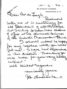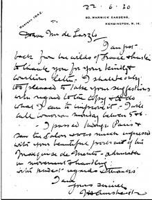 The Archive Filter search More options DLA number submit Date All 1892 1893 1894 1895 1896 1897 1898 1899 1900 1901 1902 1903 1904 1905 1906 1907 1908 1909 1910 1911 1912 1913 1914 1915 1916 1917 1918 1919 1920 1921 1922 1923 1924 1925 1926 1927 1928 1929 1930 1931 1932 1933 1934 1935 1936 1937 1956 1986 2016 Sender / Creator All “Árpád” Cooperative Society (2) Abels, Ludwig (1867 - 1937) (1) Aberconway, Charles Benjamin Bright McLaren, 1st Baron (1850 - 1934) (5) Acton of Aldenham, Richard Maximilian Lyon-Dalberg-Acton, 2nd Baron (1870 - 1924) (1) Aczél, Madame Edward [née Anny, surname unknown] (1) Agen, Boyer d' (1857 - 1945) (3) Agnew, William Lockett (1858 - 1918) (2) Ahlefeldt-Laurvig, Count Preben Ferdinand (1872 - 1946) (1) Aiken, William (1880-1950) (2) Ainger, Arthur Campbell (1841-1919) (1) Ainsworth, J.S. (1) Airlie, Mabell Ogilvy, Countess of [née Lady Mabell Frances Elizabeth Gore]; wife of 11th Earl (1866 - 1956) (1) Albemarle, Arnold Allan Cecil Keppel, 8th Earl of (1858 - 1942) (4) Albemarle, Gertrude Keppel, Countess of [née Lady Gertrude Lucia Egerton]; wife of 8th Earl (1861 - 1943) (1) Alexander, Mrs John White [née Elizabeth Alexander] (1) Alfred, G. (4) Allez, Mrs Jacques [née Mary Astor Paul; other married name Mrs Charles A. Munn] (1889 - 1950) (4) Almásy, László (1869 - 1936) (1) Amshewitz, John Henry (1882 - 1942) (6) Andrassy de Csíkszentkirály et Krasznahorka the Younger, Count Gyula (1860 - 1929) (1) Annesley, Priscilla Annesley, Countess of [née Priscilla Cecilia Armitage Moore]; wife of 5th Earl (1892 - 1941) (1) Anson, Sir William Reynell, 3rd Baronet (1843 - 1914) (1) Anthony, Geo. Hy. (1) Apponyi de Nagyappony, Count Albert (1846 - 1933) (1) Apsley, Allen Algernon Bathurst, Lord (1895 - 1942) (1) Aramon, Rita d' (1) Armstrong, Ronald (1) Armstrong, Sir Walter (1850 - 1918) (1) Arti et Amicitiae (1) Asquith, Lady Cynthia Mary Evelyn [nee Charteris] (1887-1960) (1) Astley, Mrs Philip [née Madeleine Carroll; other married names Mrs Sterling Hayden, Mrs Henri Lavorel and Mrs Andrew Heiskell] (1906 - 1987) (1) Astor of Hever, Lady [née Lady Violet Mary Elliot-Murray-Kynynmound; other married name Lady Charles Petty-Fitzmaurice] (1889 - 1965) (1) Athlone, Princess Alice of [née Princess Alice of Albany]; wife of 1st Earl (1883 - 1981) (6) Austria, Archduchess Friedrich of [née Princess Isabella von Croÿ-Dülmen] (1856 - 1931) (3) Austria, Archduke Ludwig Viktor of (1842 - 1919) (1) Aybar, Miguel González de Castejón y Elío, I conde de (1862 - 1939) (1) B. Holden & Co. (1) Bacsich, Máté (2) Baden-Powell, Lord Robert Stephenson Smyth Baden-Powell, 1st Baron (1857 - 1941) (2) Baden, Margravine of [née Princess Theodora of Greece and Denmark]; wife of Prince Berthold (1906 - 1969) (1) Baeyens, Baronne Marcel [née Suzanne Desmons] (1884 - 1949) (6) Bailey, J. R. (16) Bajza, Aladar (1) Baker, Constable Albert (1) Baldry, Alfred Lys (1858 - 1939) (48) Baldwin of Bewdley, Stanley Baldwin, 1st Earl (1867 - 1947) (1) Balfour of Dawyk, Lieutenant-Colonel Frederick Robert Stephen (1873 - 1945) (1) Balfour, Arthur James Balfour, 1st Earl of (1848 - 1930) (2) Bálint, Zoltán (1871 - 1939) (1) Balló, Ede (1859 - 1936) (10) Balló, Mrs Ede [née Margit Vámossy] (2) Balog, Elemér (1881 - 1955) (1) Balogh, Loránd Almási (1) Bankes, Mrs Walter Ralph [née Henrietta Jenny Fraser] (1871 - 1953) (1) Barbour, Doctor Alexander Hugh Freeland (1856 - 1927) (1) Barclays Bank Ltd. (1) Bárczy de Bárcziháza, István (1882 - 1952) (10) Bárczy de Bárcziháza, Madame István [née Edit Luczenbacher de Szob] (1888 - 1973) (2) Bárdossy, László (1890 - 1946) (2) Baring, Lady Ulrica [née Lady Ulrica Dunscombe] (1875-1935); wife of Brigadier-General the Hon. Everard Baring (1875 - 1935) (1) Barnaby, J. (3) Barratt, John Arthur (1857-1944) (1) Bath, Thomas Henry Thynne, 5th Marquess of (1862 - 1946) (1) Bathurst, C. J. (1) Bathurst, Countess [née Lilias Margaret Frances Borthwick] (1871 - 1965) (2) Battersea, Constance Flower, Baroness [née Constance de Rothschild]; wife of 1st Baron (1843 - 1931) (3) Baumann, Gyula (1) Bayer, Ágost (1892 - 1958) (1) Beal, Boylston Adams (1865-1944) (1) Beatty, John W. (1851 - 1924) (3) Beatty, Lady [née Mino Edith Dunn; other married name Mrs Carol D. Stone] (1886 - 1952) (2) Beauclerk, Lady Alexandra 'Alix' de Vere (1878 - 1935) (1) Beddington, Mrs Claude [née Frances Ethel Homan-Mulock] (1880 - 1963) (1) Beer, Esmond Samuel de (1895 - 1990) (1) Bell, George Kennedy Allen, Bishop of Chichester (1883 - 1958) (1) Belloc Lowndes, Mrs Marie Adelaide (1868-1947) (2) Bélugou, Léon (1865 - 1934) (8) Benczúr, Mrs Gyula (1) Bendir, Arthur ( - 1957) (8) Benedek, Atilla (1) Bénédite, Léonce (1859 - 1925) (2) Bénédite, Rosa (2) Benkő, Kálmán (1) Benlliure Gil, Professor Mariano (1862 - 1947) (7) Bennett Dampier, Lieutenant Colonel William Henry (c. 1869 - 1930) (1) Benson, Mrs Robert Henry [née Evelyn Holford] (1856 - 1943) (1) Benthall, F. Bernard (1) Berényi, Gyula (1) Berkeley Wills, Gerald (1882 - 1979) (23) Berks, Hugo Reichsritter von (1841 - 1906) (1) Berzeviczy de Berzevicze et Kakaslomnicz, Albert (1853 - 1936) (1) Bevan, G. L. (1) Bihari, Mrs Sándor (1) Bilkei Gorzó, Nándor (1) Birley, Sir Oswald (1880-1952) (4) Biron von Curland, Gustav Peter Johannes, Prince (1859 - 1941) (1) Blair, G. (1) Blaschczik, Johann (1866-1936) (1) Bligh, Ada Theodosia (3) Blomfield, Sir Reginald Theodore (1856-1942) (1) Bókay, Professor János (1858 - 1937) (3) Bone, Sir Muirhead (1876-1953) (1) Boross, Jenő (1868 - 1942) (4) Boross, Samu (1) Bosdari, Count Alessandro De (1867-1929) (1) Bossányi, Ervin (1891 - 1975) (1) Bottomley, Horatio William (1860 - 1933) (3) Bourbon, Diana (1) Bourne, His Eminence Cardinal Francis Alphonsus (1861 - 1935) (1) Bowen & Mallon (1) Bowlby, Arthur Salvin (1872-1932) (1) Bowlby, Mrs Arthur Salvin [née Catherine Mary Bond] (1875 - 1943) (3) Bowlby, Mrs Edward Salvin [née Elizabeth Van