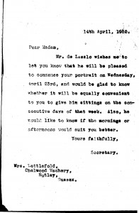 The Archive Filter search More options DLA number submit Date All 1892 1893 1894 1895 1896 1897 1898 1899 1900 1901 1902 1903 1904 1905 1906 1907 1908 1909 1910 1911 1912 1913 1914 1915 1916 1917 1918 1919 1920 1921 1922 1923 1924 1925 1926 1927 1928 1929 1930 1931 1932 1933 1934 1935 1936 1937 1956 1986 2016 Sender / Creator All “Árpád” Cooperative Society (2) Abels, Ludwig (1867 - 1937) (1) Aberconway, Charles Benjamin Bright McLaren, 1st Baron (1850 - 1934) (5) Acton of Aldenham, Richard Maximilian Lyon-Dalberg-Acton, 2nd Baron (1870 - 1924) (1) Aczél, Madame Edward [née Anny, surname unknown] (1) Agen, Boyer d' (1857 - 1945) (3) Agnew, William Lockett (1858 - 1918) (2) Ahlefeldt-Laurvig, Count Preben Ferdinand (1872 - 1946) (1) Aiken, William (1880-1950) (2) Ainger, Arthur Campbell (1841-1919) (1) Ainsworth, J.S. (1) Airlie, Mabell Ogilvy, Countess of [née Lady Mabell Frances Elizabeth Gore]; wife of 11th Earl (1866 - 1956) (1) Albemarle, Arnold Allan Cecil Keppel, 8th Earl of (1858 - 1942) (4) Albemarle, Gertrude Keppel, Countess of [née Lady Gertrude Lucia Egerton]; wife of 8th Earl (1861 - 1943) (1) Alexander, Mrs John White [née Elizabeth Alexander] (1) Alfred, G. (4) Allez, Mrs Jacques [née Mary Astor Paul; other married name Mrs Charles A. Munn] (1889 - 1950) (4) Almásy, László (1869 - 1936) (1) Amshewitz, John Henry (1882 - 1942) (6) Andrassy de Csíkszentkirály et Krasznahorka the Younger, Count Gyula (1860 - 1929) (1) Annesley, Priscilla Annesley, Countess of [née Priscilla Cecilia Armitage Moore]; wife of 5th Earl (1892 - 1941) (1) Anson, Sir William Reynell, 3rd Baronet (1843 - 1914) (1) Anthony, Geo. Hy. (1) Apponyi de Nagyappony, Count Albert (1846 - 1933) (1) Apsley, Allen Algernon Bathurst, Lord (1895 - 1942) (1) Aramon, Rita d' (1) Armstrong, Ronald (1) Armstrong, Sir Walter (1850 - 1918) (1) Arti et Amicitiae (1) Asquith, Lady Cynthia Mary Evelyn [nee Charteris] (1887-1960) (1) Astley, Mrs Philip [née Madeleine Carroll; other married names Mrs Sterling Hayden, Mrs Henri Lavorel and Mrs Andrew Heiskell] (1906 - 1987) (1) Astor of Hever, Lady [née Lady Violet Mary Elliot-Murray-Kynynmound; other married name Lady Charles Petty-Fitzmaurice] (1889 - 1965) (1) Athlone, Princess Alice of [née Princess Alice of Albany]; wife of 1st Earl (1883 - 1981) (6) Austria, Archduchess Friedrich of [née Princess Isabella von Croÿ-Dülmen] (1856 - 1931) (3) Austria, Archduke Ludwig Viktor of (1842 - 1919) (1) Aybar, Miguel González de Castejón y Elío, I conde de (1862 - 1939) (1) B. Holden & Co. (1) Bacsich, Máté (2) Baden-Powell, Lord Robert Stephenson Smyth Baden-Powell, 1st Baron (1857 - 1941) (2) Baden, Margravine of [née Princess Theodora of Greece and Denmark]; wife of Prince Berthold (1906 - 1969) (1) Baeyens, Baronne Marcel [née Suzanne Desmons] (1884 - 1949) (6) Bailey, J. R. (16) Bajza, Aladar (1) Baker, Constable Albert (1) Baldry, Alfred Lys (1858 - 1939) (48) Baldwin of Bewdley, Stanley Baldwin, 1st Earl (1867 - 1947) (1) Balfour of Dawyk, Lieutenant-Colonel Frederick Robert Stephen (1873 - 1945) (1) Balfour, Arthur James Balfour, 1st Earl of (1848 - 1930) (2) Bálint, Zoltán (1871 - 1939) (1) Balló, Ede (1859 - 1936) (10) Balló, Mrs Ede [née Margit Vámossy] (2) Balog, Elemér (1881 - 1955) (1) Balogh, Loránd Almási (1) Bankes, Mrs Walter Ralph [née Henrietta Jenny Fraser] (1871 - 1953) (1) Barbour, Doctor Alexander Hugh Freeland (1856 - 1927) (1) Barclays Bank Ltd. (1) Bárczy de Bárcziháza, István (1882 - 1952) (10) Bárczy de Bárcziháza, Madame István [née Edit Luczenbacher de Szob] (1888 - 1973) (2) Bárdossy, László (1890 - 1946) (2) Baring, Lady Ulrica [née Lady Ulrica Dunscombe] (1875-1935); wife of Brigadier-General the Hon. Everard Baring (1875 - 1935) (1) Barnaby, J. (3) Barratt, John Arthur (1857-1944) (1) Bath, Thomas Henry Thynne, 5th Marquess of (1862 - 1946) (1) Bathurst, C. J. (1) Bathurst, Countess [née Lilias Margaret Frances Borthwick] (1871 - 1965) (2) Battersea, Constance Flower, Baroness [née Constance de Rothschild]; wife of 1st Baron (1843 - 1931) (3) Baumann, Gyula (1) Bayer, Ágost (1892 - 1958) (1) Beal, Boylston Adams (1865-1944) (1) Beatty, John W. (1851 - 1924) (3) Beatty, Lady [née Mino Edith Dunn; other married name Mrs Carol D. Stone] (1886 - 1952) (2) Beauclerk, Lady Alexandra 'Alix' de Vere (1878 - 1935) (1) Beddington, Mrs Claude [née Frances Ethel Homan-Mulock] (1880 - 1963) (1) Beer, Esmond Samuel de (1895 - 1990) (1) Bell, George Kennedy Allen, Bishop of Chichester (1883 - 1958) (1) Belloc Lowndes, Mrs Marie Adelaide (1868-1947) (2) Bélugou, Léon (1865 - 1934) (8) Benczúr, Mrs Gyula (1) Bendir, Arthur ( - 1957) (8) Benedek, Atilla (1) Bénédite, Léonce (1859 - 1925) (2) Bénédite, Rosa (2) Benkő, Kálmán (1) Benlliure Gil, Professor Mariano (1862 - 1947) (7) Bennett Dampier, Lieutenant Colonel William Henry (c. 1869 - 1930) (1) Benson, Mrs Robert Henry [née Evelyn Holford] (1856 - 1943) (1) Benthall, F. Bernard (1) Berényi, Gyula (1) Berkeley Wills, Gerald (1882 - 1979) (23) Berks, Hugo Reichsritter von (1841 - 1906) (1) Berzeviczy de Berzevicze et Kakaslomnicz, Albert (1853 - 1936) (1) Bevan, G. L. (1) Bihari, Mrs Sándor (1) Bilkei Gorzó, Nándor (1) Birley, Sir Oswald (1880-1952) (4) Biron von Curland, Gustav Peter Johannes, Prince (1859 - 1941) (1) Blair, G. (1) Blaschczik, Johann (1866-1936) (1) Bligh, Ada Theodosia (3) Blomfield, Sir Reginald Theodore (1856-1942) (1) Bókay, Professor János (1858 - 1937) (3) Bone, Sir Muirhead (1876-1953) (1) Boross, Jenő (1868 - 1942) (4) Boross, Samu (1) Bosdari, Count Alessandro De (1867-1929) (1) Bossányi, Ervin (1891 - 1975) (1) Bottomley, Horatio William (1860 - 1933) (3) Bourbon, Diana (1) Bourne, His Eminence Cardinal Francis Alphonsus (1861 - 1935) (1) Bowen & Mallon (1) Bowlby, Arthur Salvin (1872-1932) (1) Bowlby, Mrs Arthur Salvin [née Catherine Mary Bond] (1875 - 1943) (3) Bowlby, Mrs Edward Salvin [née Elizabeth Van