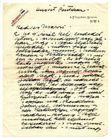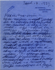 Finishing his book. Will soon go to Pest incognito. Received a commission to paint a copy portrait of Count Apponyi [111856]. Political climate: "the main thing is to prevent Vienna – and Pest – from getting infected with the Nazi ethos." Delicate situation relating to Dezső and the Jewish community in Budapest – de László has contacted Bárczy. (DLA135-0012 & DLA135-0013 letters are in the same envelope).