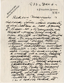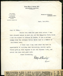 • Letter from Rhys John Davies to Dr Ottó Légrády, Siklóssy Coupures Album, 138-0008
