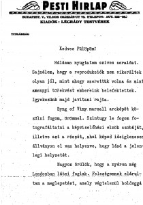 The Archive Filter search More options DLA number submit Date All 1892 1893 1894 1895 1896 1897 1898 1899 1900 1901 1902 1903 1904 1905 1906 1907 1908 1909 1910 1911 1912 1913 1914 1915 1916 1917 1918 1919 1920 1921 1922 1923 1924 1925 1926 1927 1928 1929 1930 1931 1932 1933 1934 1935 1936 1937 1956 1986 2016 Sender / Creator All “Árpád” Cooperative Society (2) Abels, Ludwig (1867 - 1937) (1) Aberconway, Charles Benjamin Bright McLaren, 1st Baron (1850 - 1934) (5) Acton of Aldenham, Richard Maximilian Lyon-Dalberg-Acton, 2nd Baron (1870 - 1924) (1) Aczél, Madame Edward [née Anny, surname unknown] (1) Agen, Boyer d' (1857 - 1945) (3) Agnew, William Lockett (1858 - 1918) (2) Ahlefeldt-Laurvig, Count Preben Ferdinand (1872 - 1946) (1) Aiken, William (1880-1950) (2) Ainger, Arthur Campbell (1841-1919) (1) Ainsworth, J.S. (1) Airlie, Mabell Ogilvy, Countess of [née Lady Mabell Frances Elizabeth Gore]; wife of 11th Earl (1866 - 1956) (1) Albemarle, Arnold Allan Cecil Keppel, 8th Earl of (1858 - 1942) (4) Albemarle, Gertrude Keppel, Countess of [née Lady Gertrude Lucia Egerton]; wife of 8th Earl (1861 - 1943) (1) Alexander, Mrs John White [née Elizabeth Alexander] (1) Alfred, G. (4) Allez, Mrs Jacques [née Mary Astor Paul; other married name Mrs Charles A. Munn] (1889 - 1950) (4) Almásy, László (1869 - 1936) (1) Amshewitz, John Henry (1882 - 1942) (6) Andrassy de Csíkszentkirály et Krasznahorka the Younger, Count Gyula (1860 - 1929) (1) Annesley, Priscilla Annesley, Countess of [née Priscilla Cecilia Armitage Moore]; wife of 5th Earl (1892 - 1941) (1) Anson, Sir William Reynell, 3rd Baronet (1843 - 1914) (1) Anthony, Geo. Hy. (1) Apponyi de Nagyappony, Count Albert (1846 - 1933) (1) Apsley, Allen Algernon Bathurst, Lord (1895 - 1942) (1) Aramon, Rita d' (1) Armstrong, Ronald (1) Armstrong, Sir Walter (1850 - 1918) (1) Arti et Amicitiae (1) Asquith, Lady Cynthia Mary Evelyn [nee Charteris] (1887-1960) (1) Astley, Mrs Philip [née Madeleine Carroll; other married names Mrs Sterling Hayden, Mrs Henri Lavorel and Mrs Andrew Heiskell] (1906 - 1987) (1) Astor of Hever, Lady [née Lady Violet Mary Elliot-Murray-Kynynmound; other married name Lady Charles Petty-Fitzmaurice] (1889 - 1965) (1) Athlone, Princess Alice of [née Princess Alice of Albany]; wife of 1st Earl (1883 - 1981) (6) Austria, Archduchess Friedrich of [née Princess Isabella von Croÿ-Dülmen] (1856 - 1931) (3) Austria, Archduke Ludwig Viktor of (1842 - 1919) (1) Aybar, Miguel González de Castejón y Elío, I conde de (1862 - 1939) (1) B. Holden & Co. (1) Bacsich, Máté (2) Baden-Powell, Lord Robert Stephenson Smyth Baden-Powell, 1st Baron (1857 - 1941) (2) Baden, Margravine of [née Princess Theodora of Greece and Denmark]; wife of Prince Berthold (1906 - 1969) (1) Baeyens, Baronne Marcel [née Suzanne Desmons] (1884 - 1949) (6) Bailey, J. R. (16) Bajza, Aladár (1) Baker, Constable Albert (1) Baldry, Alfred Lys (1858 - 1939) (48) Baldwin of Bewdley, Stanley Baldwin, 1st Earl (1867 - 1947) (1) Balfour of Dawyk, Lieutenant-Colonel Frederick Robert Stephen (1873 - 1945) (1) Balfour, Arthur James Balfour, 1st Earl of (1848 - 1930) (2) Bálint, Zoltán (1871 - 1939) (1) Balló, Ede (1859 - 1936) (10) Balló, Mrs Ede [née Margit Vámossy] (2) Balog, Elemér (1881 - 1955) (1) Balogh, Loránd Almási (1) Bankes, Mrs Walter Ralph [née Henrietta Jenny Fraser] (1871 - 1953) (1) Barbour, Doctor Alexander Hugh Freeland (1856 - 1927) (1) Barclays Bank Ltd. (1) Bárczy de Bárcziháza, István (1882 - 1952) (10) Bárczy de Bárcziháza, Madame István [née Edit Luczenbacher de Szob] (1888 - 1973) (2) Bárdossy, László (1890 - 1946) (2) Baring, Lady Ulrica [née Lady Ulrica Dunscombe] (1875-1935); wife of Brigadier-General the Hon. Everard Baring (1875 - 1935) (1) Barnaby, J. (3) Barratt, John Arthur (1857-1944) (1) Bath, Thomas Henry Thynne, 5th Marquess of (1862 - 1946) (1) Bathurst, C. J. (1) Bathurst, Countess [née Lilias Margaret Frances Borthwick] (1871 - 1965) (2) Battersea, Constance Flower, Baroness [née Constance de Rothschild]; wife of 1st Baron (1843 - 1931) (3) Baumann, Gyula (1) Bayer, Ágost (1892 - 1958) (1) Beal, Boylston Adams (1865-1944) (1) Beatty, John W. (1851 - 1924) (3) Beatty, Lady [née Mino Edith Dunn; other married name Mrs Carol D. Stone] (1886 - 1952) (2) Beauclerk, Lady Alexandra 'Alix' de Vere (1878 - 1935) (1) Beddington, Mrs Claude [née Frances Ethel Homan-Mulock] (1880 - 1963) (1) Beer, Esmond Samuel de (1895 - 1990) (1) Bell, George Kennedy Allen, Bishop of Chichester (1883 - 1958) (1) Belloc Lowndes, Mrs Marie Adelaide (1868-1947) (2) Bélugou, Léon (1865 - 1934) (8) Benczúr, Mrs Gyula (1) Bendir, Arthur ( - 1957) (8) Benedek, Atilla (1) Bénédite, Léonce (1859 - 1925) (2) Bénédite, Rosa (2) Benkő, Kálmán (1) Benlliure Gil, Professor Mariano (1862 - 1947) (7) Bennett Dampier, Lieutenant Colonel William Henry (c. 1869 - 1930) (1) Benson, Mrs Robert Henry [née Evelyn Holford] (1856 - 1943) (1) Benthall, F. Bernard (1) Berényi, Gyula (1) Berkeley Wills, Gerald (1882 - 1979) (23) Berks, Hugo Reichsritter von (1841 - 1906) (1) Berzeviczy de Berzevicze et Kakaslomnicz, Albert (1853 - 1936) (1) Bevan, G. L. (1) Bihari, Mrs Sándor (1) Bilkei Gorzó, Nándor (1) Birley, Sir Oswald (1880-1952) (4) Biron von Curland, Gustav Peter Johannes, Prince (1859 - 1941) (1) Blair, G. (1) Blaschczik, Johann (1866-1936) (1) Bligh, Ada Theodosia (3) Blomfield, Sir Reginald Theodore (1856-1942) (1) Bókay, Professor János (1858 - 1937) (3) Bone, Sir Muirhead (1876-1953) (1) Boross, Jenő (1868 - 1942) (4) Boross, Samu (1) Bosdari, Count Alessandro De (1867-1929) (1) Bossányi, Ervin (1891 - 1975) (1) Bottomley, Horatio William (1860 - 1933) (3) Bourbon, Diana (1) Bourne, His Eminence Cardinal Francis Alphonsus (1861 - 1935) (1) Bowen & Mallon (1) Bowlby, Arthur Salvin (1872-1932) (1) Bowlby, Mrs Arthur Salvin [née Catherine Mary Bond] (1875 - 1943) (3) Bowlby, Mrs Edward Salvin [née Elizabeth Va