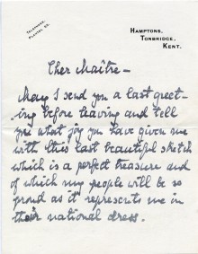 The Archive Filter search More options DLA number submit Date All 1892 1893 1894 1895 1896 1897 1898 1899 1900 1901 1902 1903 1904 1905 1906 1907 1908 1909 1910 1911 1912 1913 1914 1915 1916 1917 1918 1919 1920 1921 1922 1923 1924 1925 1926 1927 1928 1929 1930 1931 1932 1933 1934 1935 1936 1937 1956 1986 2016 Sender / Creator All “Árpád” Cooperative Society (2) Abels, Ludwig (1867 - 1937) (1) Aberconway, Charles Benjamin Bright McLaren, 1st Baron (1850 - 1934) (5) Acton of Aldenham, Richard Maximilian Lyon-Dalberg-Acton, 2nd Baron (1870 - 1924) (1) Aczél, Madame Edward [née Anny, surname unknown] (1) Agen, Boyer d' (1857 - 1945) (3) Agnew, William Lockett (1858 - 1918) (2) Ahlefeldt-Laurvig, Count Preben Ferdinand (1872 - 1946) (1) Aiken, William (1880-1950) (2) Ainger, Arthur Campbell (1841-1919) (1) Ainsworth, J.S. (1) Airlie, Mabell Ogilvy, Countess of [née Lady Mabell Frances Elizabeth Gore]; wife of 11th Earl (1866 - 1956) (1) Albemarle, Arnold Allan Cecil Keppel, 8th Earl of (1858 - 1942) (4) Albemarle, Gertrude Keppel, Countess of [née Lady Gertrude Lucia Egerton]; wife of 8th Earl (1861 - 1943) (1) Alexander, Mrs John White [née Elizabeth Alexander] (1) Alfred, G. (4) Allez, Mrs Jacques [née Mary Astor Paul; other married name Mrs Charles A. Munn] (1889 - 1950) (4) Almásy, László (1869 - 1936) (1) Amshewitz, John Henry (1882 - 1942) (6) Andrassy de Csíkszentkirály et Krasznahorka the Younger, Count Gyula (1860 - 1929) (1) Annesley, Priscilla Annesley, Countess of [née Priscilla Cecilia Armitage Moore]; wife of 5th Earl (1892 - 1941) (1) Anson, Sir William Reynell, 3rd Baronet (1843 - 1914) (1) Anthony, Geo. Hy. (1) Apponyi de Nagyappony, Count Albert (1846 - 1933) (1) Apsley, Allen Algernon Bathurst, Lord (1895 - 1942) (1) Aramon, Rita d' (1) Armstrong, Ronald (1) Armstrong, Sir Walter (1850 - 1918) (1) Arti et Amicitiae (1) Asquith, Lady Cynthia Mary Evelyn [nee Charteris] (1887-1960) (1) Astley, Mrs Philip [née Madeleine Carroll; other married names Mrs Sterling Hayden, Mrs Henri Lavorel and Mrs Andrew Heiskell] (1906 - 1987) (1) Astor of Hever, Lady [née Lady Violet Mary Elliot-Murray-Kynynmound; other married name Lady Charles Petty-Fitzmaurice] (1889 - 1965) (1) Athlone, Princess Alice of [née Princess Alice of Albany]; wife of 1st Earl (1883 - 1981) (6) Austria, Archduchess Friedrich of [née Princess Isabella von Croÿ-Dülmen] (1856 - 1931) (3) Austria, Archduke Ludwig Viktor of (1842 - 1919) (1) Aybar, Miguel González de Castejón y Elío, I conde de (1862 - 1939) (1) B. Holden & Co. (1) Bacsich, Máté (2) Baden-Powell, Lord Robert Stephenson Smyth Baden-Powell, 1st Baron (1857 - 1941) (2) Baden, Margravine of [née Princess Theodora of Greece and Denmark]; wife of Prince Berthold (1906 - 1969) (1) Baeyens, Baronne Marcel [née Suzanne Desmons] (1884 - 1949) (6) Bailey, J. R. (16) Bajza, Aladár (1) Baker, Constable Albert (1) Baldry, Alfred Lys (1858 - 1939) (48) Baldwin of Bewdley, Stanley Baldwin, 1st Earl (1867 - 1947) (1) Balfour of Dawyk, Lieutenant-Colonel Frederick Robert Stephen (1873 - 1945) (1) Balfour, Arthur James Balfour, 1st Earl of (1848 - 1930) (2) Bálint, Zoltán (1871 - 1939) (1) Balló, Ede (1859 - 1936) (10) Balló, Mrs Ede [née Margit Vámossy] (2) Balog, Elemér (1881 - 1955) (1) Balogh, Loránd Almási (1) Bankes, Mrs Walter Ralph [née Henrietta Jenny Fraser] (1871 - 1953) (1) Barbour, Doctor Alexander Hugh Freeland (1856 - 1927) (1) Barclays Bank Ltd. (1) Bárczy de Bárcziháza, István (1882 - 1952) (10) Bárczy de Bárcziháza, Madame István [née Edit Luczenbacher de Szob] (1888 - 1973) (2) Bárdossy, László (1890 - 1946) (2) Baring, Lady Ulrica [née Lady Ulrica Dunscombe] (1875-1935); wife of Brigadier-General the Hon. Everard Baring (1875 - 1935) (1) Barnaby, J. (3) Barratt, John Arthur (1857-1944) (1) Bath, Thomas Henry Thynne, 5th Marquess of (1862 - 1946) (1) Bathurst, C. J. (1) Bathurst, Countess [née Lilias Margaret Frances Borthwick] (1871 - 1965) (2) Battersea, Constance Flower, Baroness [née Constance de Rothschild]; wife of 1st Baron (1843 - 1931) (3) Baumann, Gyula (1) Bayer, Ágost (1892 - 1958) (1) Beal, Boylston Adams (1865-1944) (1) Beatty, John W. (1851 - 1924) (3) Beatty, Lady [née Mino Edith Dunn; other married name Mrs Carol D. Stone] (1886 - 1952) (2) Beauclerk, Lady Alexandra 'Alix' de Vere (1878 - 1935) (1) Beddington, Mrs Claude [née Frances Ethel Homan-Mulock] (1880 - 1963) (1) Beer, Esmond Samuel de (1895 - 1990) (1) Bell, George Kennedy Allen, Bishop of Chichester (1883 - 1958) (1) Belloc Lowndes, Mrs Marie Adelaide (1868-1947) (2) Bélugou, Léon (1865 - 1934) (8) Benczúr, Mrs Gyula (1) Bendir, Arthur ( - 1957) (8) Benedek, Atilla (1) Bénédite, Léonce (1859 - 1925) (2) Bénédite, Rosa (2) Benkő, Kálmán (1) Benlliure Gil, Professor Mariano (1862 - 1947) (7) Bennett Dampier, Lieutenant Colonel William Henry (c. 1869 - 1930) (1) Benson, Mrs Robert Henry [née Evelyn Holford] (1856 - 1943) (1) Benthall, F. Bernard (1) Berényi, Gyula (1) Berkeley Wills, Gerald (1882 - 1979) (23) Berks, Hugo Reichsritter von (1841 - 1906) (1) Berzeviczy de Berzevicze et Kakaslomnicz, Albert (1853 - 1936) (1) Bevan, G. L. (1) Bihari, Mrs Sándor (1) Bilkei Gorzó, Nándor (1) Birley, Sir Oswald (1880-1952) (4) Biron von Curland, Gustav Peter Johannes, Prince (1859 - 1941) (1) Blair, G. (1) Blaschczik, Johann (1866-1936) (1) Bligh, Ada Theodosia (3) Blomfield, Sir Reginald Theodore (1856-1942) (1) Bókay, Professor János (1858 - 1937) (3) Bone, Sir Muirhead (1876-1953) (1) Boross, Jenő (1868 - 1942) (4) Boross, Samu (1) Bosdari, Count Alessandro De (1867-1929) (1) Bossányi, Ervin (1891 - 1975) (1) Bottomley, Horatio William (1860 - 1933) (3) Bourbon, Diana (1) Bourne, His Eminence Cardinal Francis Alphonsus (1861 - 1935) (1) Bowen & Mallon (1) Bowlby, Arthur Salvin (1872-1932) (1) Bowlby, Mrs Arthur Salvin [née Catherine Mary Bond] (1875 - 1943) (3) Bowlby, Mrs Edward Salvin [née Elizabeth Va