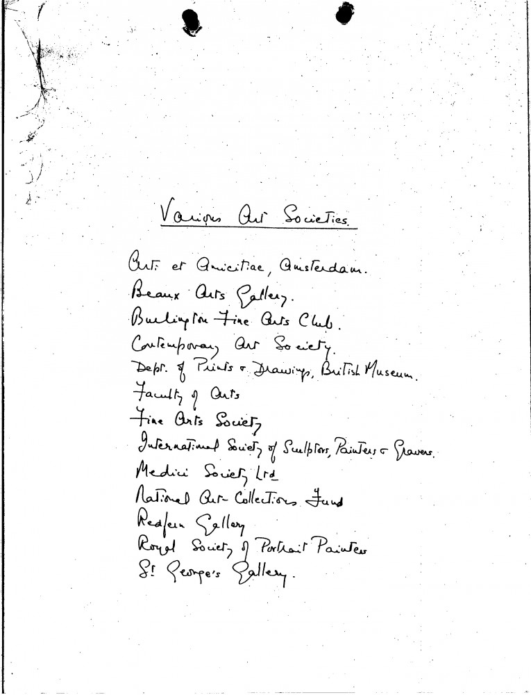 Previous See list Next 105-0002 de Laszlo Archive © de Laszlo Foundation 105-0002 Handwritten list of "Various Art Societies". Accession number 105-0002 Type List Location Public Collection, National Portrait Gallery, London Close 105-0002 Studio Correspondence Nov 1920 - Apr 1924 Various Art Societ, 105-0002