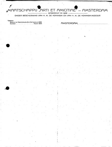 Previous See list Next 105-0004 de Laszlo Archive © de Laszlo Foundation 105-0004 Headed paper from Arti et Amicitiae, Amsterdam. Accession number 105-0004 Type Letter Sender Arti et Amicitiae Location Public Collection, National Portrait Gallery, London Close 105-0004 Headed paper from Arti et Amicitiae, Studio Correspondence Nov 1920 - Apr 1924 Various Art Societ, 105-0004