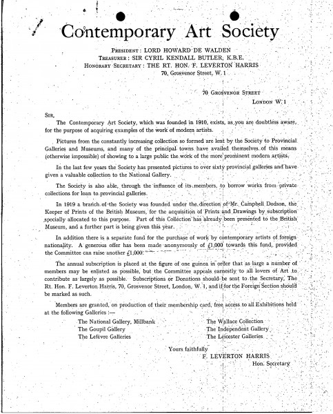 Information concerning the Contemporary Art Society.
