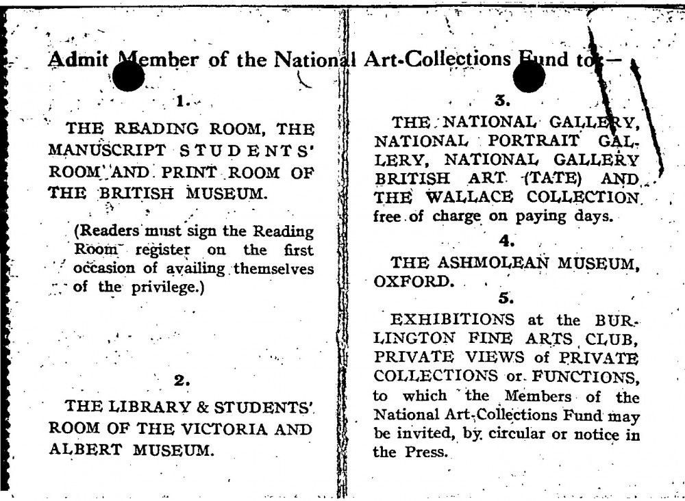 De László's membership card for the National Art-Collection Fund for 1925.