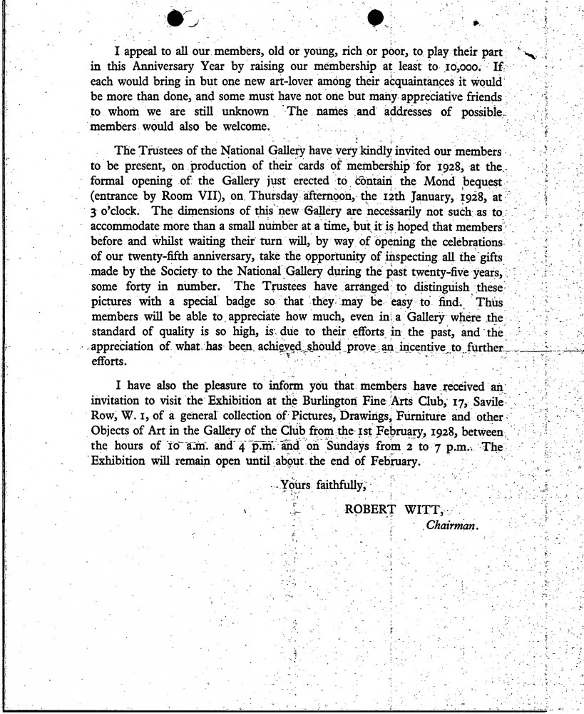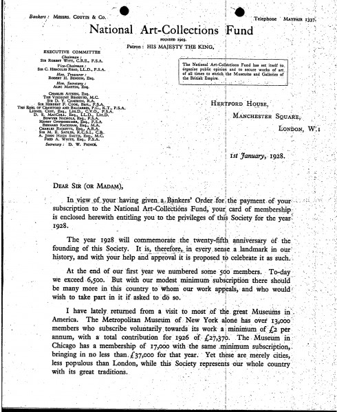 Letter enclosing de László's membership card for the National Art-Collections Fund and details of forthcoming events.