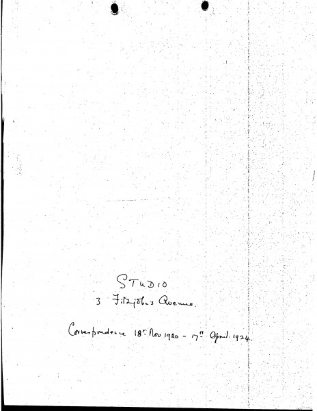 Previous See list Next 105-0082 de Laszlo Archive © de Laszlo Foundation 105-0082 STUDIO / 3 Fitzjohn's Avenue. / Correspondence 18th Nov 1920 – 17th April 1924. Accession number 105-0082 Type Folder Location Public Collection, National Portrait Gallery, London Close 105-0082 Studio Correspondence Nov 1920 - Apr 1924 Various Art Societ, 105-0082