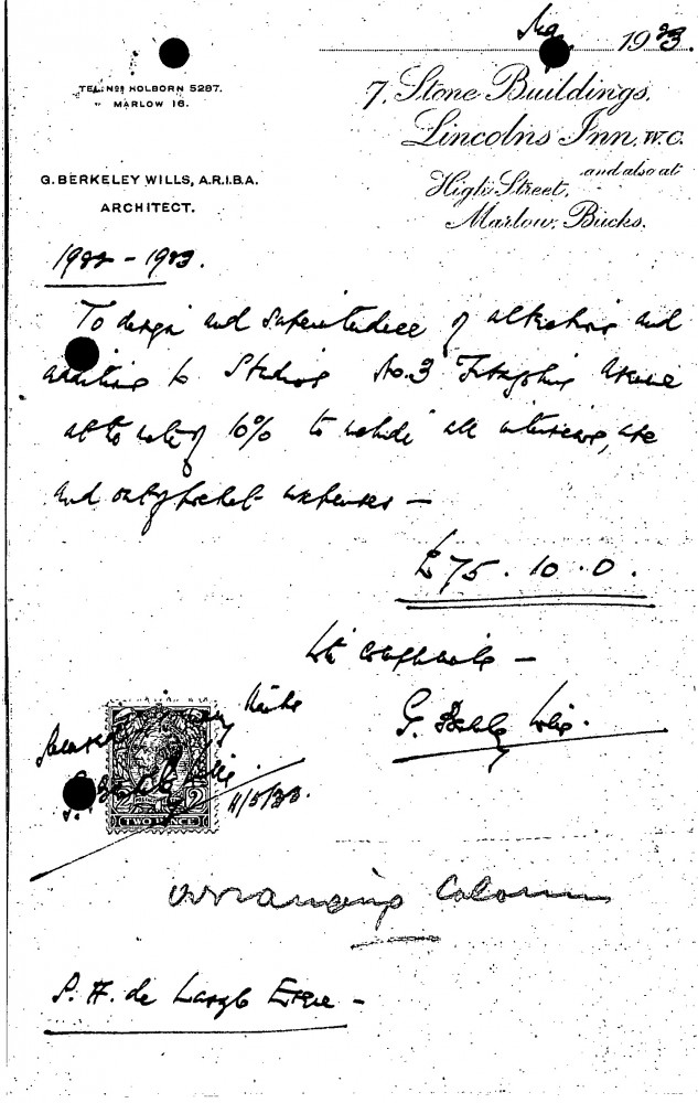 Invoice from Gerald Berkeley Wills to de László, Studio Correspondence Nov 1920 - Apr 1924 Various Art Societ, 105-0091