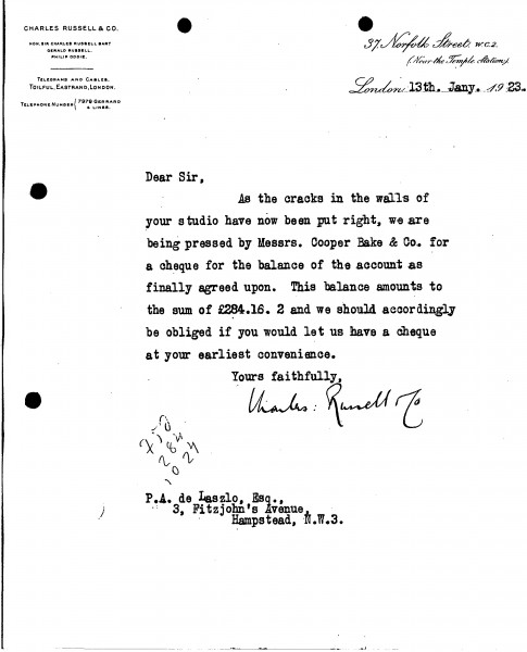 Cooper, Bake & Co. request payment for rectification works to the walls of the studio.