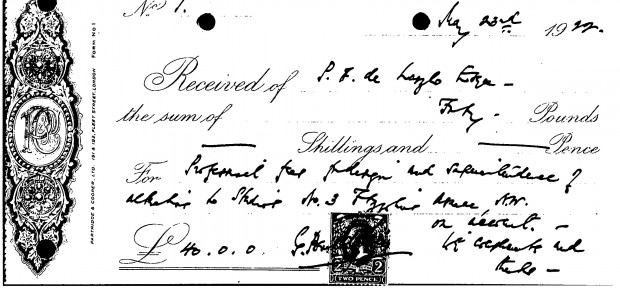 Receipt for payment for work to the studios at Fitzjohn's Avenue.