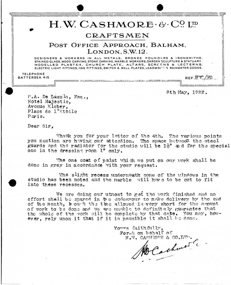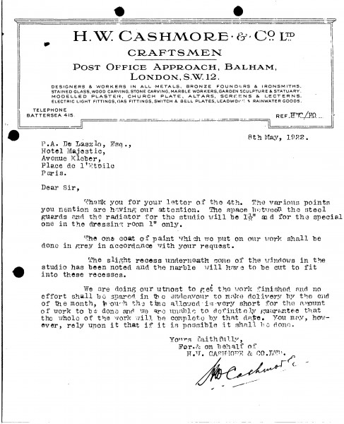 Regarding the provision of radiators and cases for the studio at Fitzjohn's Avenue.