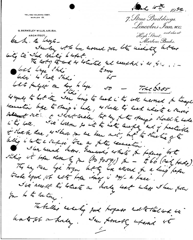Estimates regarding work to the large and small studios at Fitzjohn's Avenue.