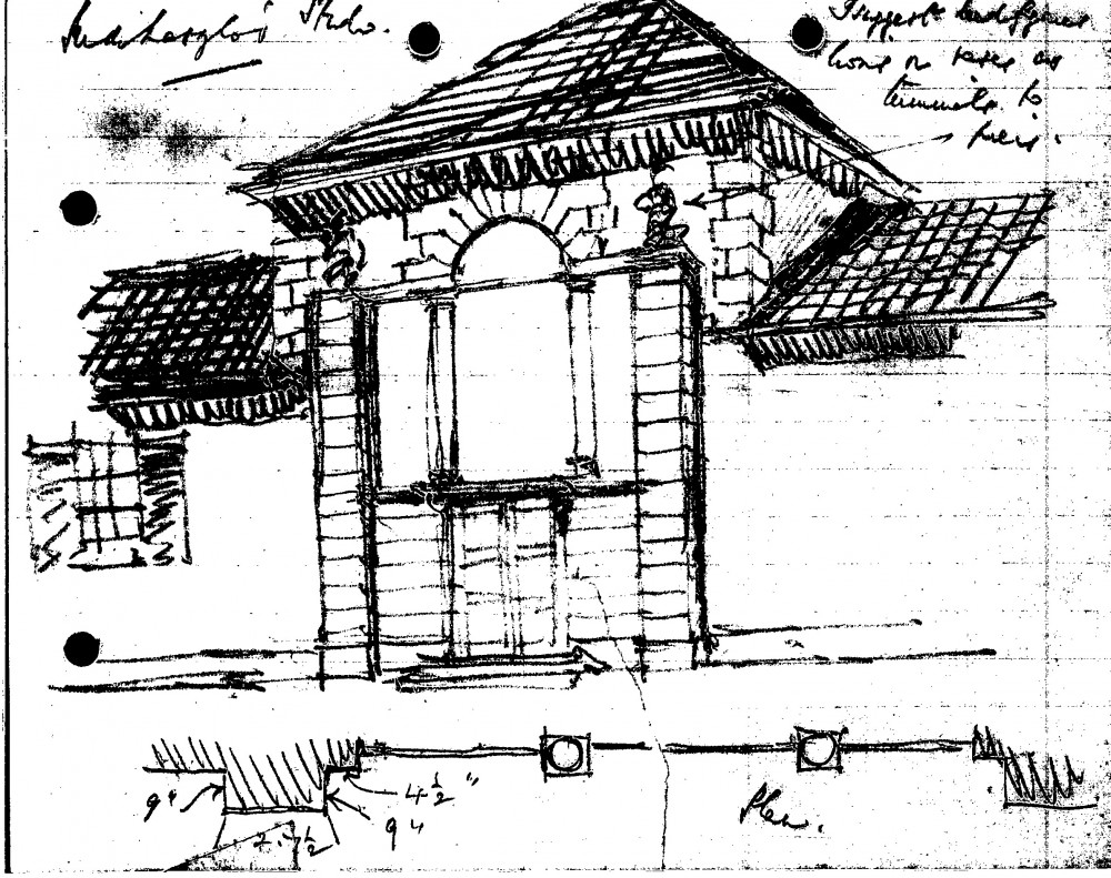 Architectural plans with notes for de László’s Studio, 3 Fitzjohn’s Avenue.