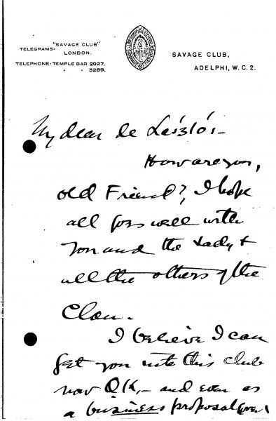 Frederick Carleton Chamberlin believes he can get de László into the Savage Club