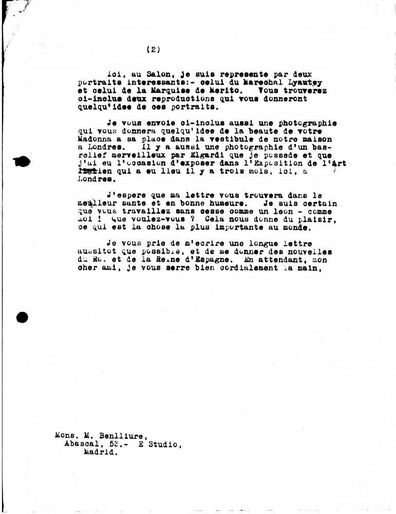 Letter from Mariano Benlliure Gil to Philip and Lucy de László, Supplementary Arranged by Years Only 1930-1932, 019-0097