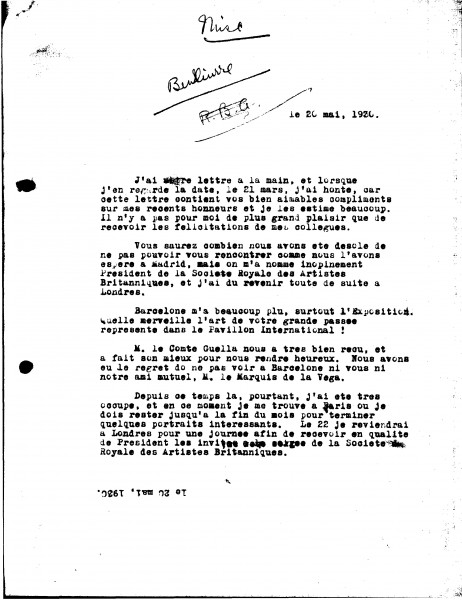 Letter from de László to Mariano Benlliure Gil, Supplementary Arranged by Years Only 1930-1932, 019-0096 Letter from de László to Mariano Benlliure Gil, Supplementary Arranged by Years Only 1930-1932, 019-0096