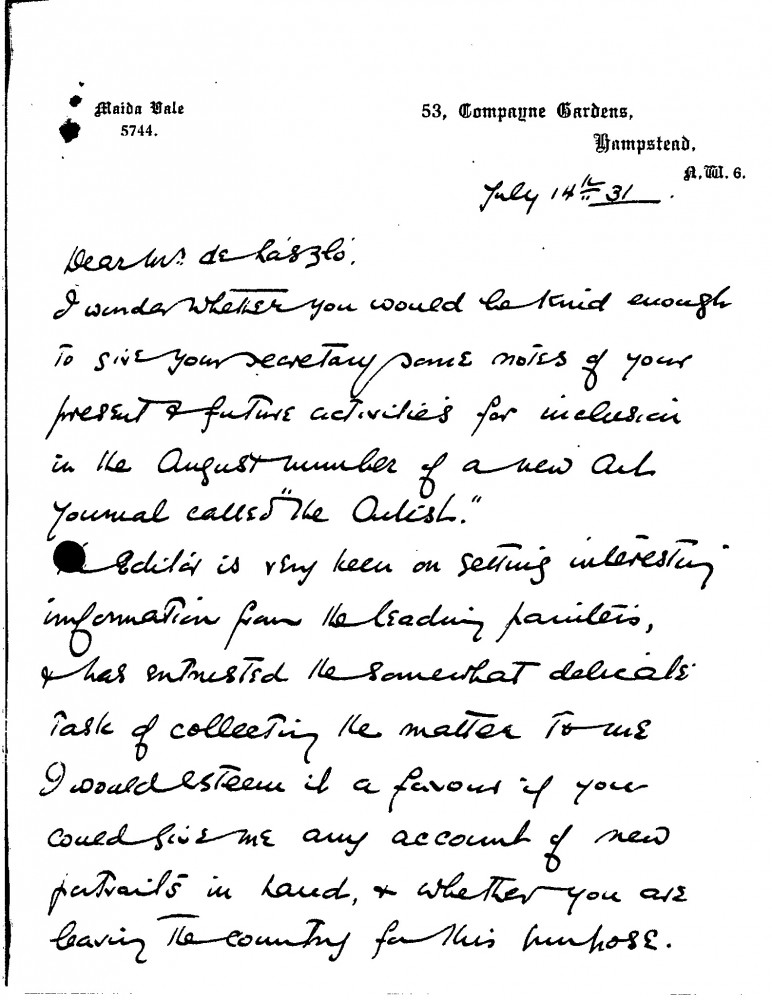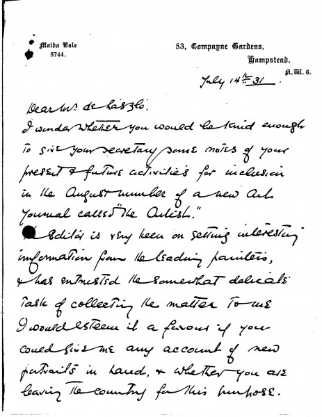 The editor of 'The Artist' (a new art journal) wishes to publish some news from leading painters on their present and future activities.