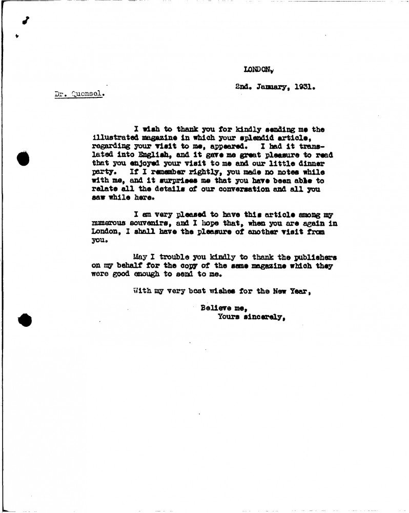 De László thanks Annie Quensel for the illustrated magazine that includes her article on the artist; he has had it translated into English.