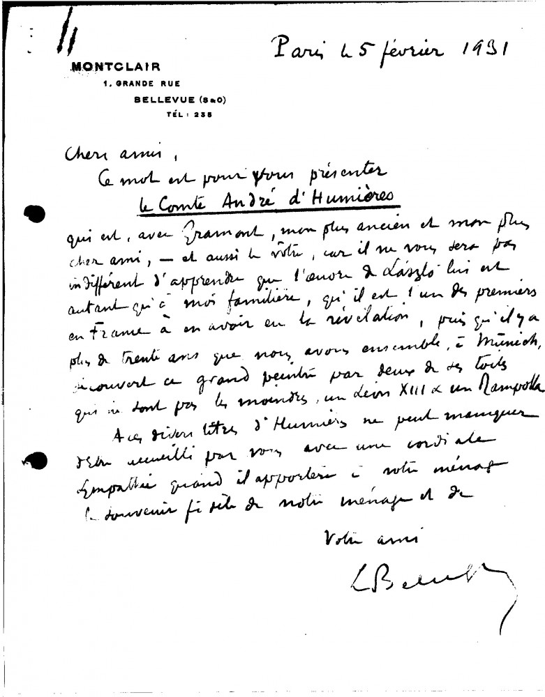 Letter from Léon Bélugou to de László, Supplementary Arranged by Years Only 1930-1932, 019-0200