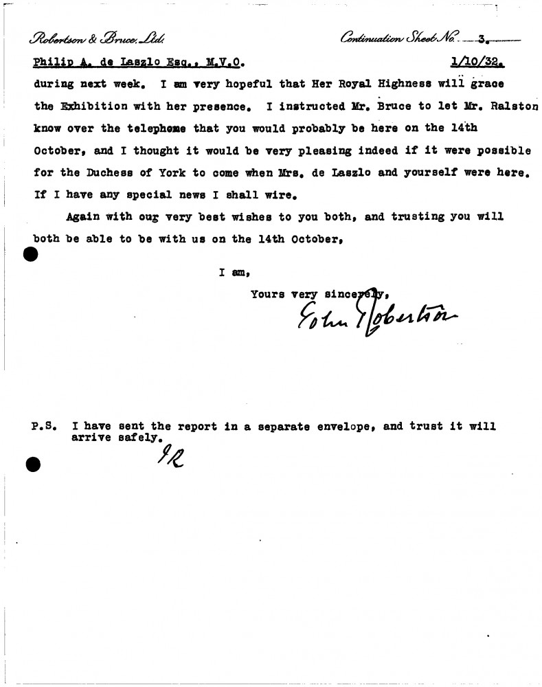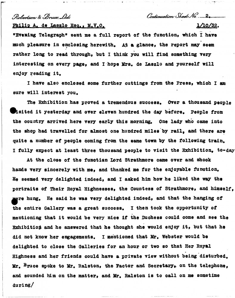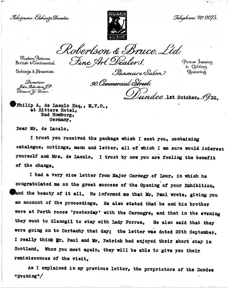 Report of de László's exhibition in Dundee (Victoria Art Galleries, 1932).