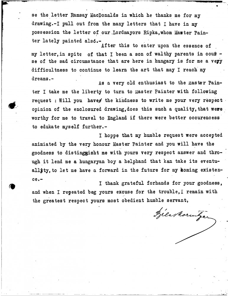 Béla Kornitzer asks for de László's view of his drawings.