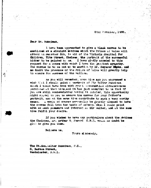 De László suggests Runciman might wish to bid on a "blank canvas" at a forthcoming charity auction and have his father's portrait painted.