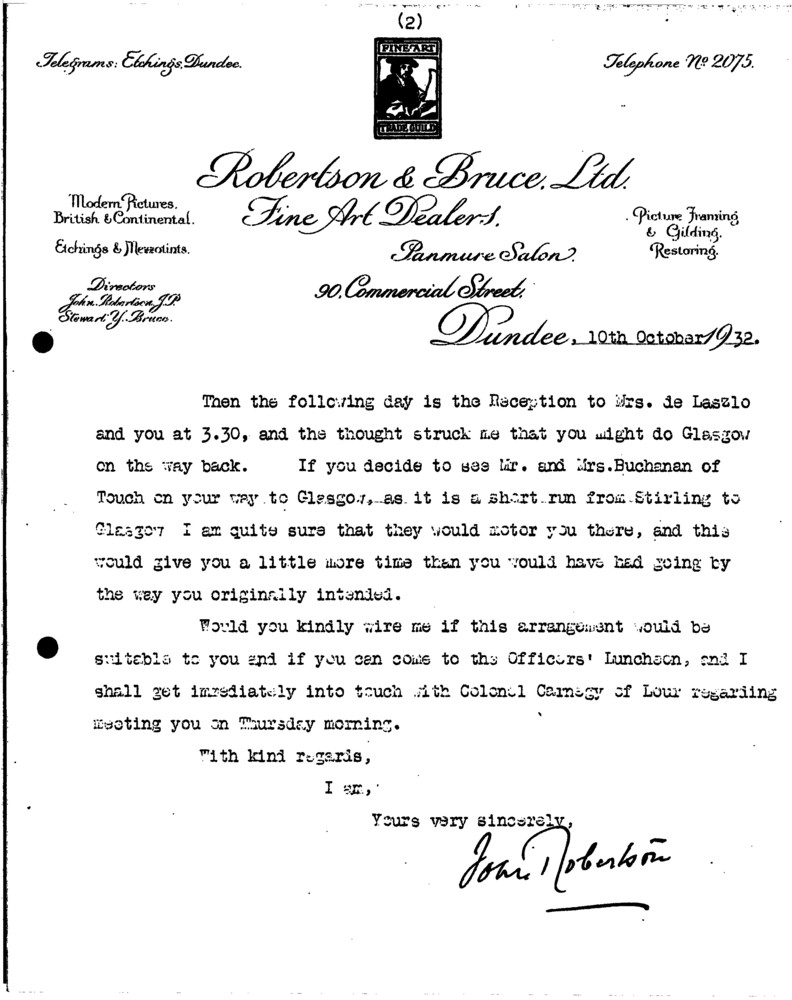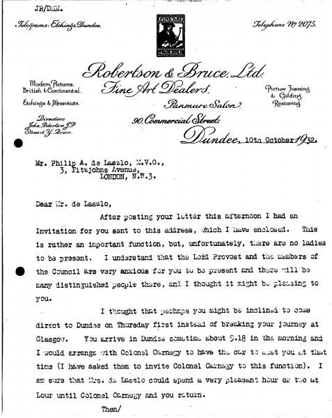 Letter from John Robertson to de László (item includes draft reply in de László's hand), Supplementary Arranged by Years Only 1930-1932, 019-0223