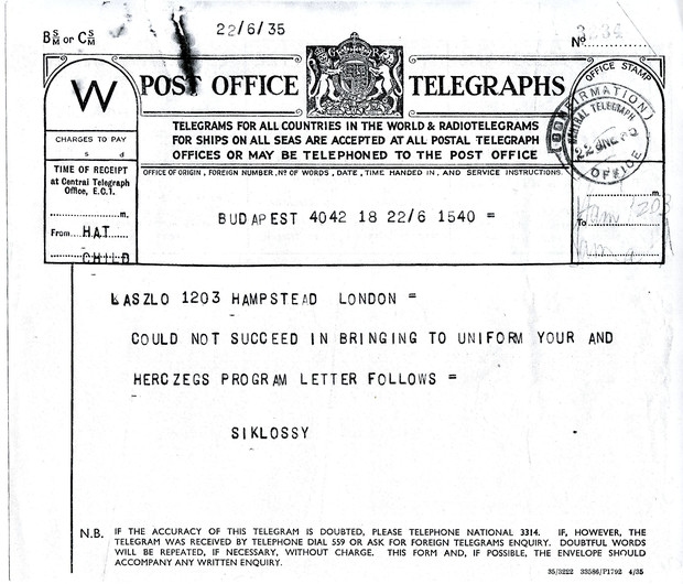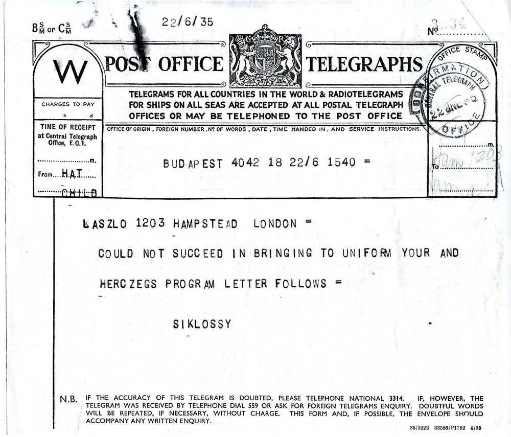 Siklóssy has been unable to coordinate schedules with Herczeg and de László for portrait sittings in Paris.