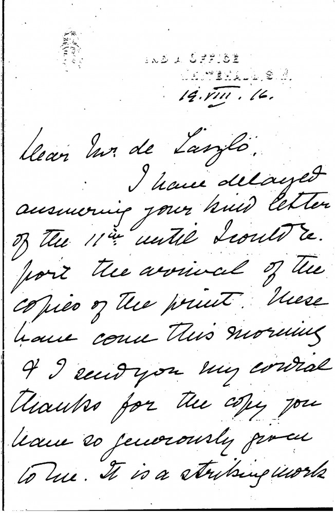 Two letters from Lieutenant-Colonel Sir James Robert Dunlop Smith to de László, K 1916, 1923, 1924, 1931, 1932, 1933, 1935, 1937, 073-0158 Two letters from Lieutenant-Colonel Sir James Robert Dunlop Smith to de László, K 1916, 1923, 1924, 1931, 1932, 1933, 1935, 1937, 073-0158 Two letters from Lieutenant-Colonel Sir James Robert Dunlop Smith to de László, K 1916, 1923, 1924, 1931, 1932, 1933, 1935, 1937, 073-0158