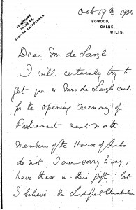 Letter from the 6th Marquess of Lansdowne to de László, Letters Personal 1934 A to M 1935, 022-0374