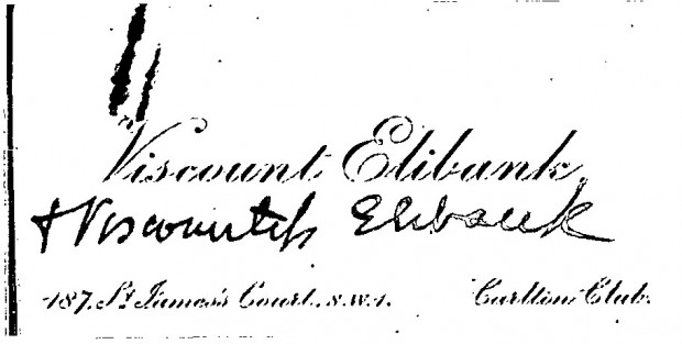 Visit card of Viscount and Viscountess Elibank, Exhibitions at French Gallery London 1924-1927, 107-0127