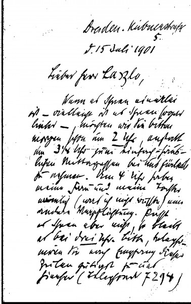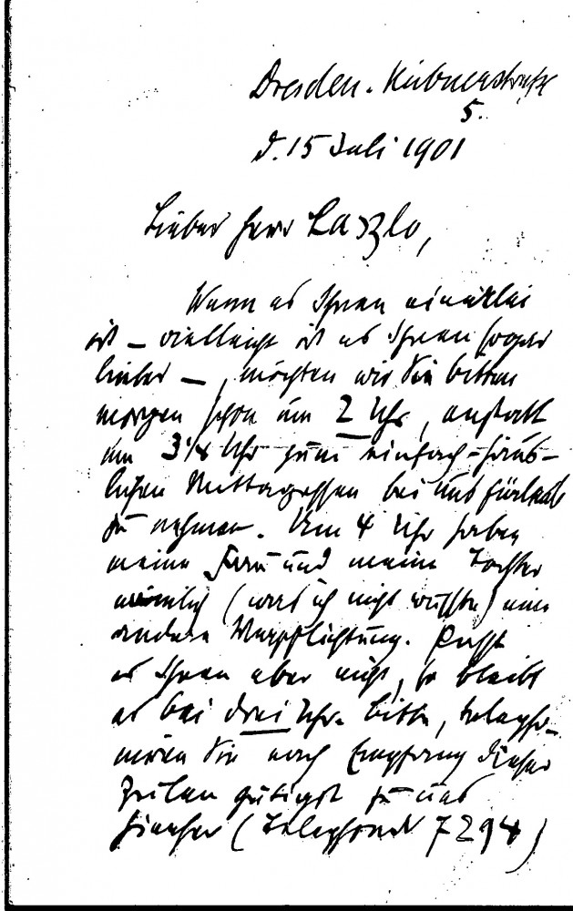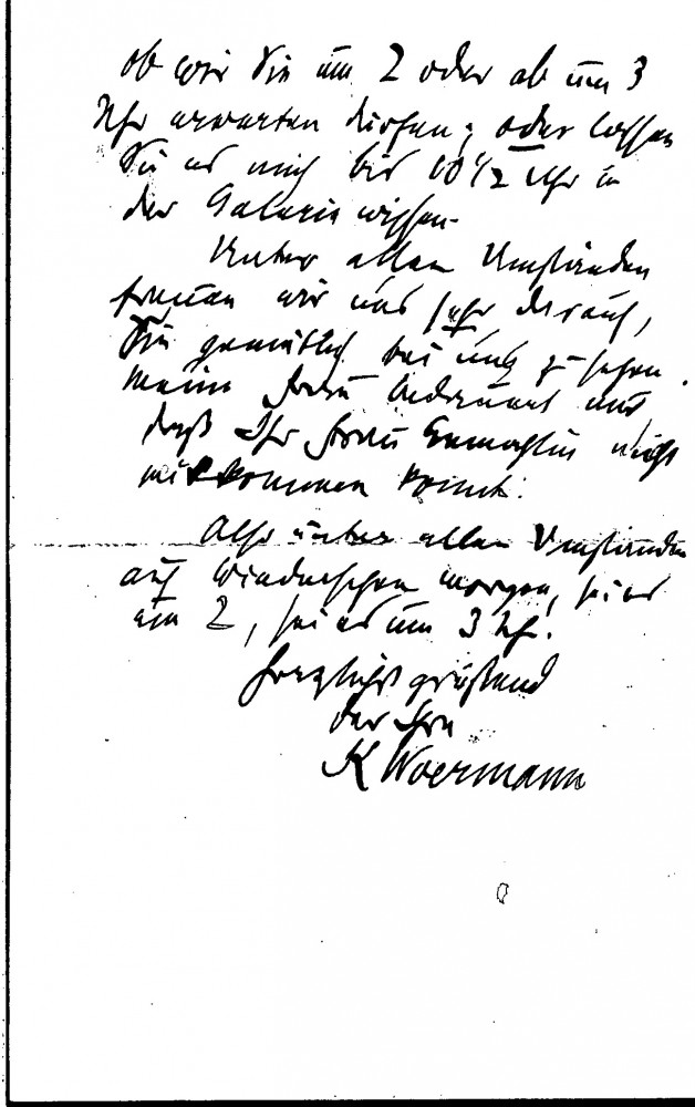 Letter from Professor Karl Woermann asking de László to come to lunch at two o'clock rather than quarter past three as originally planned