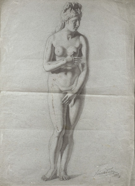 Previous See list Next Academic Work: Plaster Cast of the Venus Pudica Alex Fox © de Laszlo Foundation Academic Work: Plaster Cast of the Venus Pudica 1887 Drawing Graphite on paper 56.3 x 42.3 cm (22.17 x 16.65 in.) László Fülöp / 1887. / III. Collection Private Collection Close