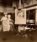 • 1908 Lucy de László and Johanna Laub with their portrait in the artist's studio with the Marchioness of Cambridge's portrait behind, at West House, Campden Hill, London