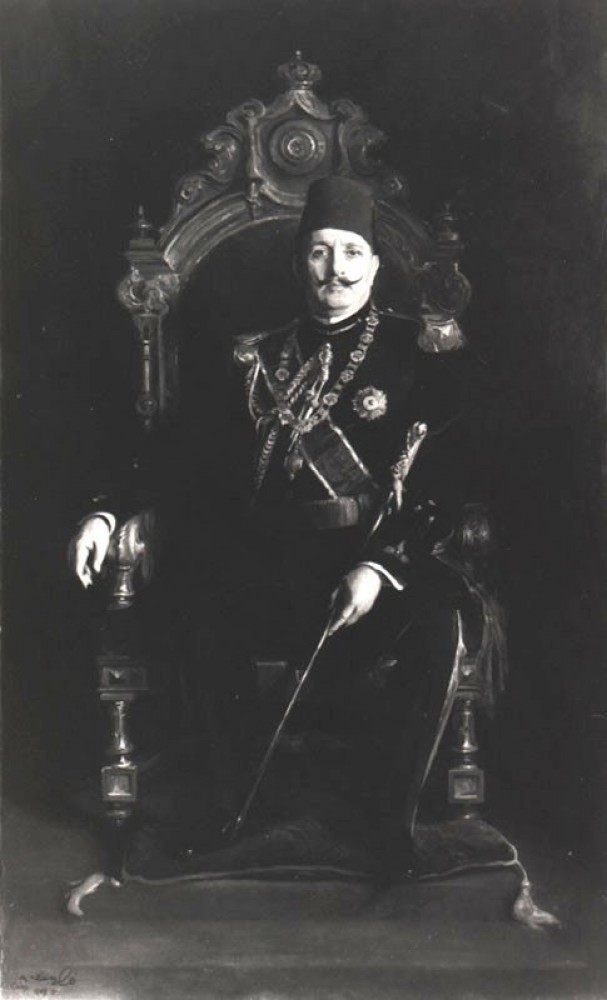 Previous See list Next Egypt, King Fuad I of © Photo courtesy of Ehab Ellaban, curator of Features of an Era at the Centre of Arts Aisha Fahmi Palace, Cairo Egypt, King Fuad I of 1929 Painting Oil on canvas 244 x 138 cm (96.06 x 54.33 in.) de László / CAIRO / 1929. I. Collection Untraced Close