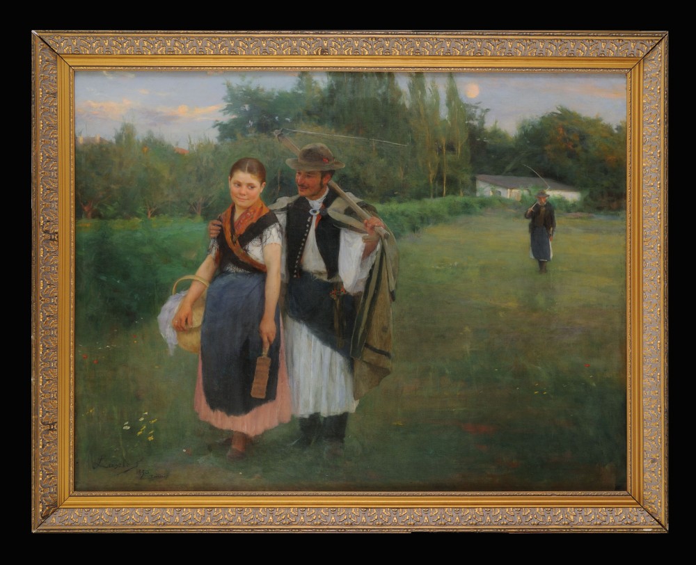 Previous See list Next Genre Picture: A Courting Couple in a Rural Landscape Fehér Katalin - Budapest © de Laszlo Foundation Genre Picture: A Courting Couple in a Rural Landscape 1893 Painting Oil on canvas 73 x 97 cm (28.74 x 38.19 in.) László F. 1893. Sárszög Collection Private Collection Close