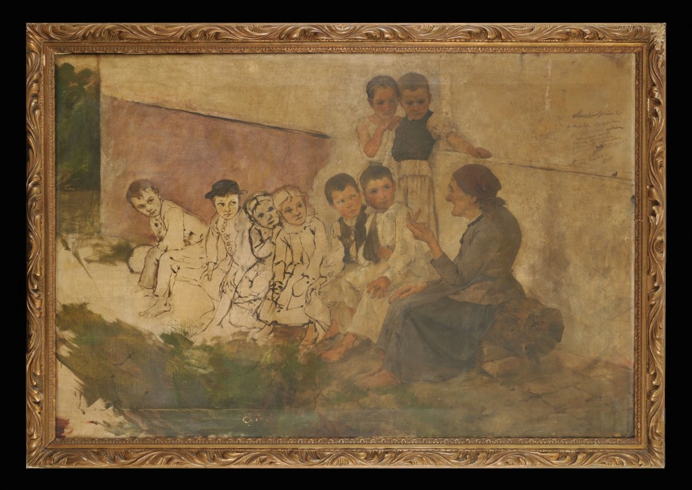 - László Fülöp E./ e vázlatot 1891-ben festettem/ azután néhány / hónappal később teljesen átalakít/ ottam még ugyanezen / festményemet Hódmezővásárhelyen /Bécsben/ május hó 8 [ László Fülöp E. – I painted this sketch in 1891, then a few months later at Hód