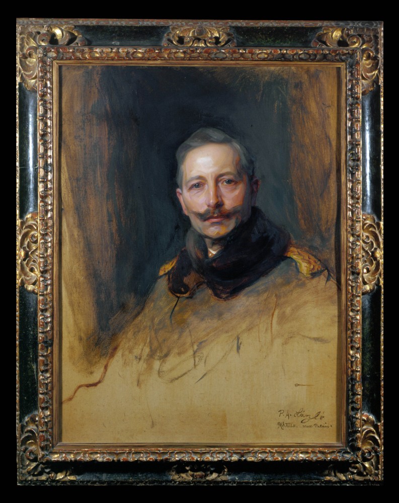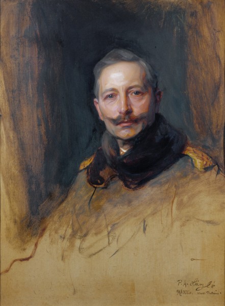 Previous See list Next German Emperor Wilhelm II, King of Prussia © House of Hohenzollern, HRH Georg Friedrich Prince of Prussia, Hohenzollern Castle German Emperor Wilhelm II, King of Prussia 1908 Painting Oil on board 91 x 70 cm (35.83 x 27.56 in.) P. A. László / 1908 XII. 11. Neues Palais. Collection Private Collection Close