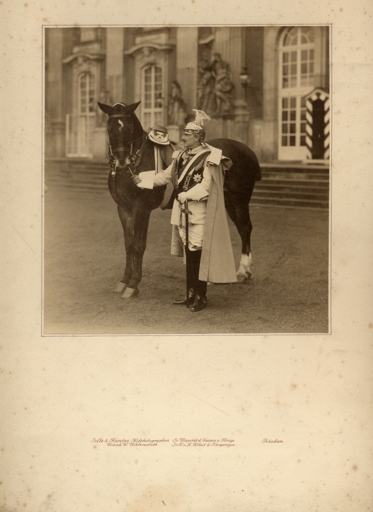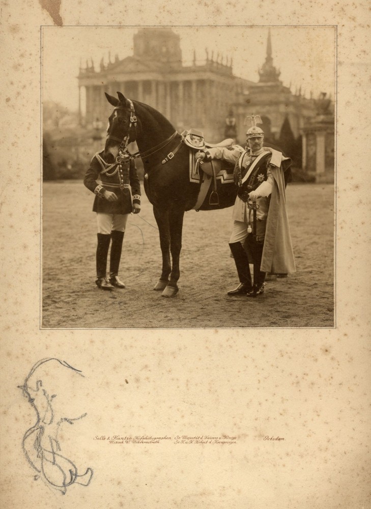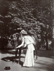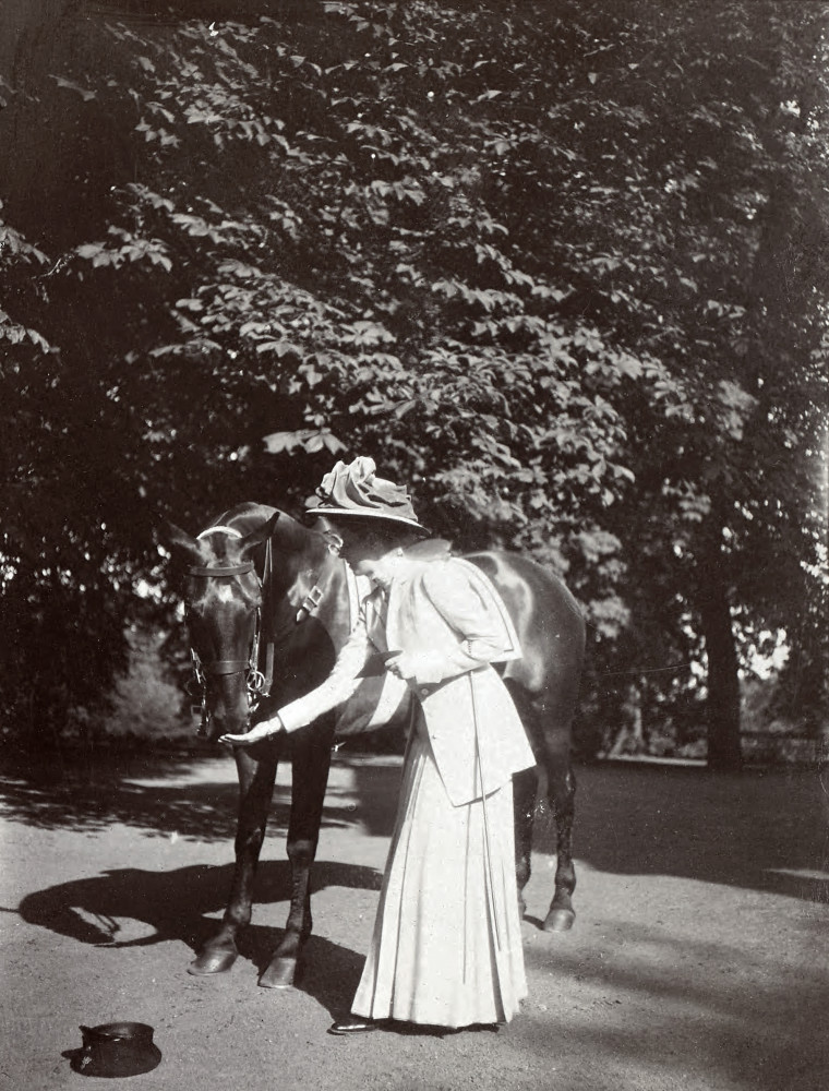 • 1909 c. Princess Viktoria Luise of Prussia with her father the German Emperor Wilhelm II's horse, Wilhelmshöhe, Germany
