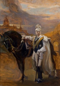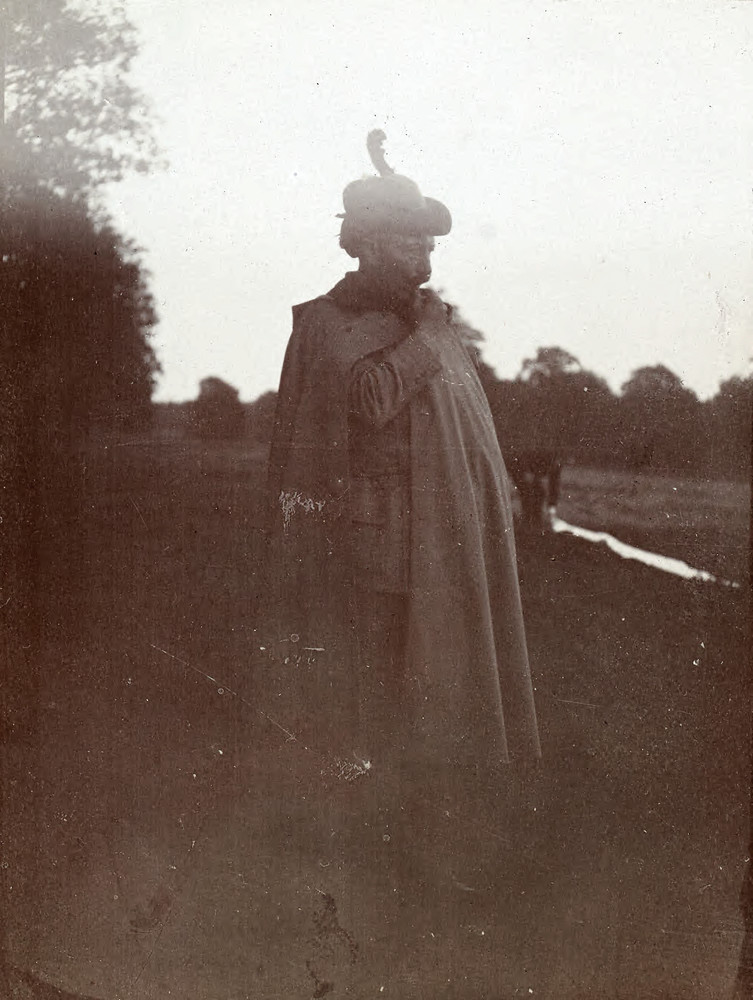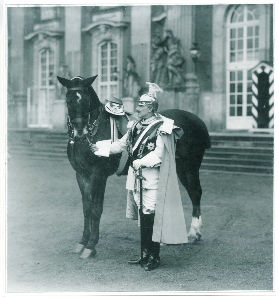• 1909 c. The German Emperor Wilhelm II, wearing a cloak and hunting hat, Wilhelmshöhe, Germany