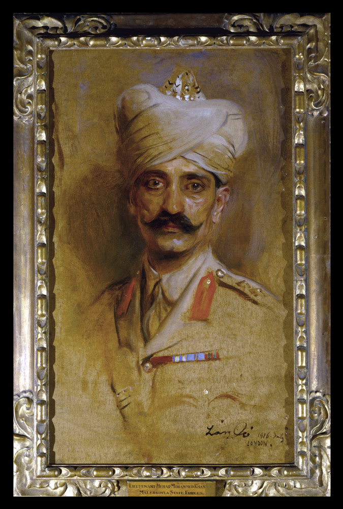 Previous See list Next Khan, Lieutenant Mehar Mahomed © de Laszlo Foundation Khan, Lieutenant Mehar Mahomed 1916 Painting Oil on board 69.9 x 40.7 cm (27.52 x 16.02 in.) László 1916. July / LONDON. Collection Private Collection Close