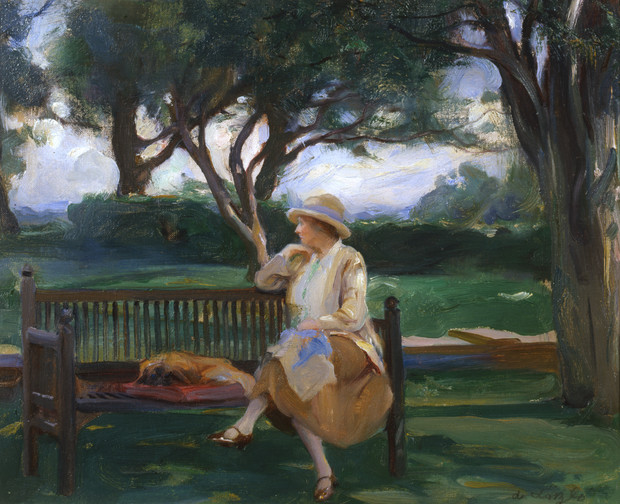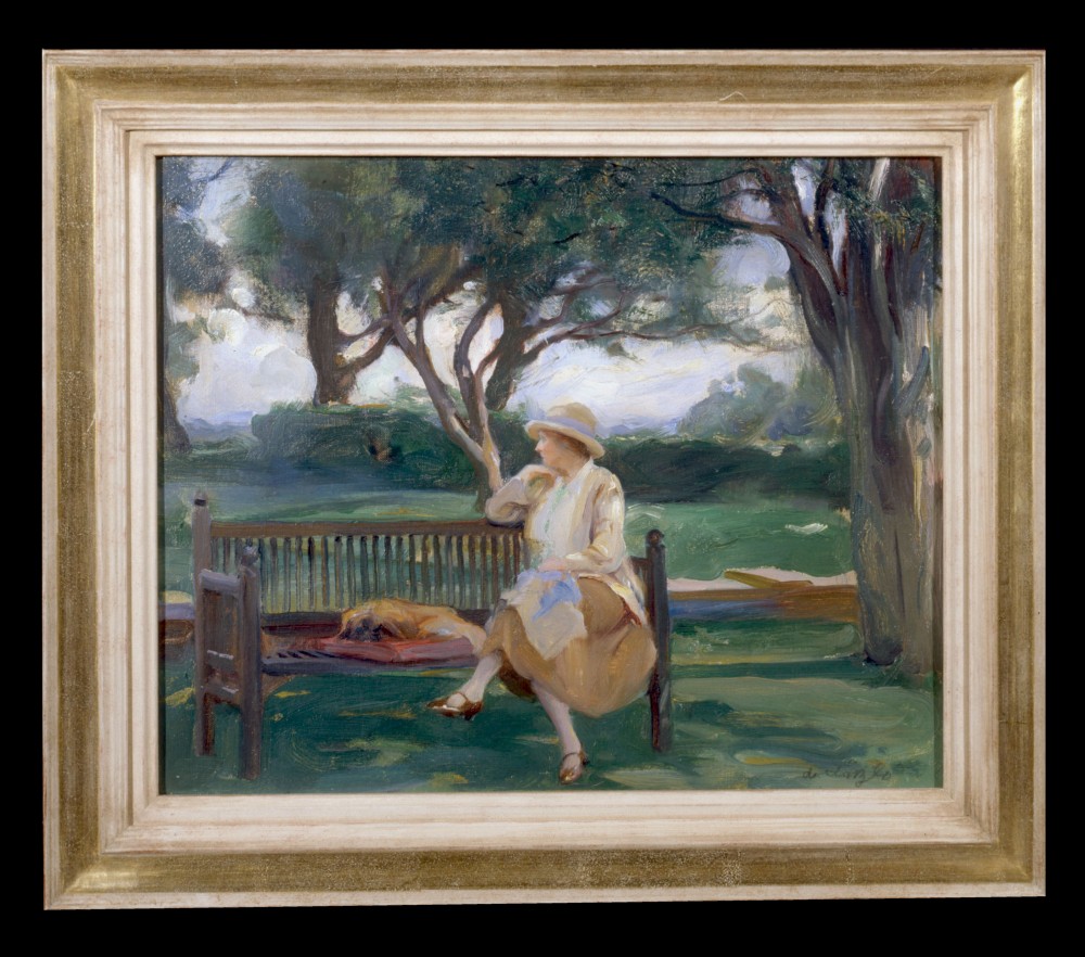 Previous See list Next László, Mrs Philip de, née Lucy Madeleine Guinness, with pet Pekingese dog Yang at Littleworth Corner Roy Fox Fine Art Photography © de Laszlo Foundation László, Mrs Philip de, née Lucy Madeleine Guinness, with pet Pekingese dog Yang at Littleworth Corner 1928 Painting Oil on canvasboard 32 x 40 cm (12.60 x 15.75 in.) de László Collection Private Collection Close